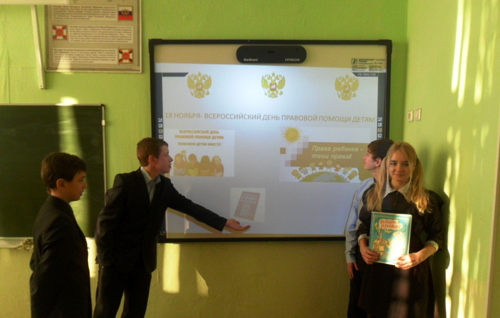 Опубликовано: 18.11.2016В 1-11 классах проведены беседы о правах и обязанностях детей. Рассказано о Конвенции о правах ребенка и Конституции России. ФОТО