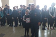 Сегодня на общешкольной линейке присутствовал государственный инспектор Камско Устьинского инспекторского участка ФКУ «Центр ГИМС МЧС России по РТ» Валиев И.М., который провел профилактическую беседу о безопасности на водоемах, на льду и вблизи водоемов. В заключении инспектор вручил сертификат участника Лариной Э, ученице 2 класса, за участие в конкурсе рисунков «Буду бдительным на льду»