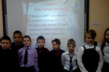 В рамках празднования «Дня героя Отечества» четвероклассники приобщились к историческому прошлому нашей страны, познакомившись с историей праздника. В течение классного часа ребят охватывало чувство гордости за людей, совершивших героические поступки. Учащиеся познакомились с личностью – Георгием Победоносцем; о легендах связанных с его именем, обратили внимание еще раз на символ нашей страны, о великих полководцах, награжденных Орденом Святого Георгия Победоносца. В ходе беседы ребята активно высказывали свое мнение, впечатление, делали выводы. В заключение классного часа ребята поняли, раз есть место подвигу в жизни человека, значит, были, есть и будут герои, а значит, и праздник будет отмечаться во все времена.