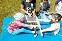 "Спортивный Сабантуй". Сегодня шестнадцатый день лагеря. До завтрака воспитатели Лизунина Э.Х., Даминова М.Р., Шулаева Т.А. провели беседу "Витамины с грядки". Они рассказали о пользе овощей и фруктов. После завтрака физ.рук. Горлова Н.Н.пригласила на спортивный Сабантуй. Как весело и увлеченно ребята принимали участие в соревнованиях, мерились силами, перетягивали канат, разбивали горшки, прыгали в мешках! После обеда провели конкурс рисунков "Разноцветное лето".
