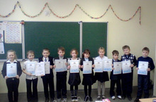 Ученики 1 класса (кл. рук.Галиуллина М.Н.) с октября по декабрь 2012 г. участвовали во Всероссийских дистанционных олимпиадах по математике, окружающему миру, русскому языку. В олимпиаде по математике заняли 3 место - Наумов Денис, Мочалов Никита, Семенов Никита, Шайдуллина Алина, Шишкина Маргарита. По окружающему миру – 3 место у Наумова Дениса. По русскому языку 1 место - Семенов Никита, 2 место - Жукова Виктория, Смирнова Камилла, Селящева Полина, 3 место - Лепилин Александр, Скудина Валерия.