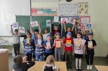 Ребята подготовили небольшое мероприятие для первоклассников. Рассказали о деятельности своего отряда, о знаках дорожного движения, загадывали загадки, а также провели игру на внимательность и знание сигналов светофора -