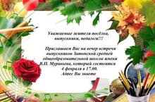 4 февраля приглашаем в школу на вечер встречи выпускников.Ждем Вас, уважаемые педагоги, выпускники и жители поселка!