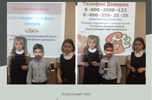 Ко Дню защиты детей в 1 Б классе прошёл классный час на тему: «Детский телефон доверия». Ребята познакомились с новым видом услуги, которую могут предоставлять детям в трудных жизненных ситуациях. Изучили новые слова «анонимность» и «конфиденциальность».