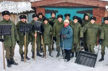 Учащиеся 8 класса, воспитатель Губайдуллин И.И. после обильного снегопада провели уборку снега в придомовой территории пенсионерке Ахмадиевой С.