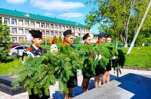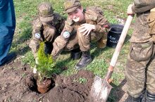 Учащиеся кадетской школы вместе с воспитателями посадили хвойные деревья - туи, возле Обелиска Славы. тем самым почтили память погибших воинов ВОВ.