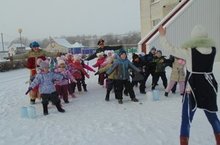 Неделя здоровья продолжается. Сегодня в старшей группе прошло спортивное мероприятие "Не боимся мы, мороза!", В гости к ним пришли Дед мороз и Баба Яга. Они вместе с детьми играли в хоккей, катали детей на санках, также дети катались на лыжах. Дед Мороз детям принес сладкие подарки.