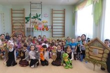 Выпускники нашего детского сада,ныне учащиеся 1 класса, занимающиеся в кружке "Экият" пришли к нам в гости. Они показали сказку "Теремок" воспитанникам нашего детского сада. В конце сфотографировались на память с нашими малышами.