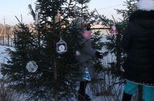 Сегодня у главных ворот детского сада наша Ёлка примерила свой новогодний наряд. Сотрудники дружно нарядили Ёлку игрушками, сделанными детьми и их родителями.