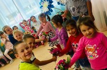 Сегодня у нас День разноцветных букетов.Дети собрали красивые цветы и подарили своим друзьям,воспитателям.