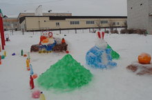 "Миляшкай" балалар бакчасы коллективы һәм әти-әниләр бакча территориясенә кардан Кыш бабай белән Кар Кызы, әкият геройлары ясадылар. Кар сыннары балаларны, хәтта өлкән яшьтәге кешеләрне дә әкияти дөнҗяга алып керә, бәйрәм рухы тарата.