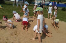 Наконец-то наступило лето. Устанавилась хорошая погода. Естественные силы природы с давних времен использовались и сейчас остаются основными и самыми действенными средствами закаливания. И в нашем садике начались проводится закаливающие мероприятия: хождение босиком по разным поверхностям, воздушные и солнечные ванны.