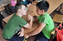 17 июня воспитанники лагеря состязались в борьбе "Armwresling",самые сильные были награждены дипломами. Девочки показали свои умения укладки волос и красивой прически. К концу дня для получения сладкого полдника, ребята прошли квест по станциям, организованных на территории школы.
