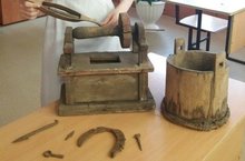 Сегодня ученица нашего класса Макарова Анастасия сделала подарок школьному музею. Она принесла наконечник стрелы, гарпун, старый ключ, гвоздь, подкову, деревянную кадушку и приспособление для прядения нитей. Все они были найдены в деревне Большое Тябердино на горе "Казан тавы". Руководитель школьного музея, Насибуллина Роза Дамировна, с радостью приняла новые экспонаты и поблагодарила Настю.