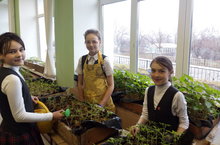 Учащиеся школы с удовольствием сажают семена и ухаживают за рассадой. Сейчас растения располагаются на подоконниках, а позже займут свои места на грядках в огороде. -