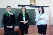 Эти симпатичные девушки, сотрудницы банка. Их можно легко узнать по зеленым галстукам. В школе они не первый раз, и в этот раз они пришли в школу с благородной миссией. Из их уст мы узнали о программах банка, которые могут помочь сотрудникам бюджетных организаций в решении большого количества финансовых задач. Например, о возможности получить ипотечный кредит, о депозитах на выгодных условиях и многое другое.