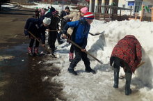 В эти дни в школе проходит акция «Весне дорогу!». Учащиеся совместно с педагогами расчищают прилегающую территорию, тротуары, брусчатку от остатков снега и льда, что позволит добиться скорейшего высыхания дорожных покрытий и их дальнейшей санитарной обработки. -