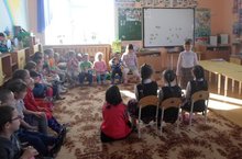 “Изге гамәлләр кыл” атналыгы кысаларында без укучылар белән “Сандугач” балалар бакчасына кердек. Укучылар алар белән уйнадылар. Русча “Теремок” әкиятенең эчтәлеген сөйләделәр. Балалар кызыксынып тыңладылар. Үзләре дә “Түгәрәк икмәк” әкиятен уйнап күрсәттеләр.