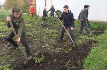 Но, наступает осень и клумбы надо готовить к зиме. С этим легко справились наши мальчики.
