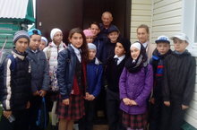 Шул уңайдан без, 6 а сыйныфы укучылары, сугыш һәм хезмәт ветераны Гайнетдин бабай һәм аның карчыгы Әбәдия әбине котлап үзебезнең күчтәнәчләребезне тапшырып кайттык. Бабай безне бик шатланып каршы алды, тыныч тормышта, муллыкта яшәвенә бик канәгать булуын әйтте, искә алып, хәл белергә килүебезгә рәхмәтен белдерде. Укучылар тагын килергә вәгъдә биреп аның белән саубуллаштылар.