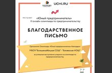 Учащиеся нашей школы принимали участие в олимпиаде «Юный предприниматель». Многие ученики получили сертификаты, есть диплом победителя. А в школу прислали благодарственное письмо за успешные выступления школьников на олимпиаде по редпринимательству.