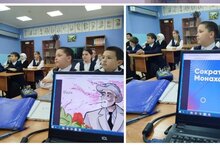 В школе проходит передвижная фотовыставка «Отец Героя», на которой представлены портреты отцов участников специальной военной операции из Кайбицкого района, удостоенных государственных наград.