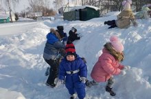 Во время зимних прогулок воспитатели организуют для своих воспитанников наблюдения за снегом, льдом, снежинками, проводят подвижные игры, включающие в том числе элементы зимних видов спорта. А еще, дети с большим удовольствием катаются с горки.