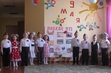 Накануне 9 мая в детском саду прошли мероприятия, посвященные дню Великой Победы: Состоялся праздничный утренник ,на который были приглашены труженики тыла и дети войны . Дети рассказывали стихи о войне; пели песни о празднике победы, о мире, о солдатах; исполняли танцы.