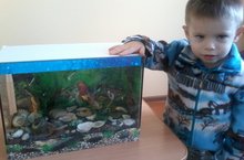 Он своими руками сделал муляж аквариума , и подарил детскому саду .