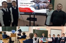 На уроке педагоги обсудили с ребятами важные вопросы: кого можно назвать защитником Отечества и почему. Вспоминали подвиги героев, как исторических, так и современных. Присутвовал Ветеран педагогического труда, председатель совета ветеранов сельского поселения, руководитель школьного музея Елисеева Е.И.