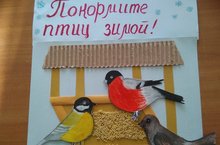 Учащиеся 4 класса под руководством педагога дополнительного образования Овечкиной Е.Е. изготовили агитационную апликацию на тему "Покормите птиц зимой"