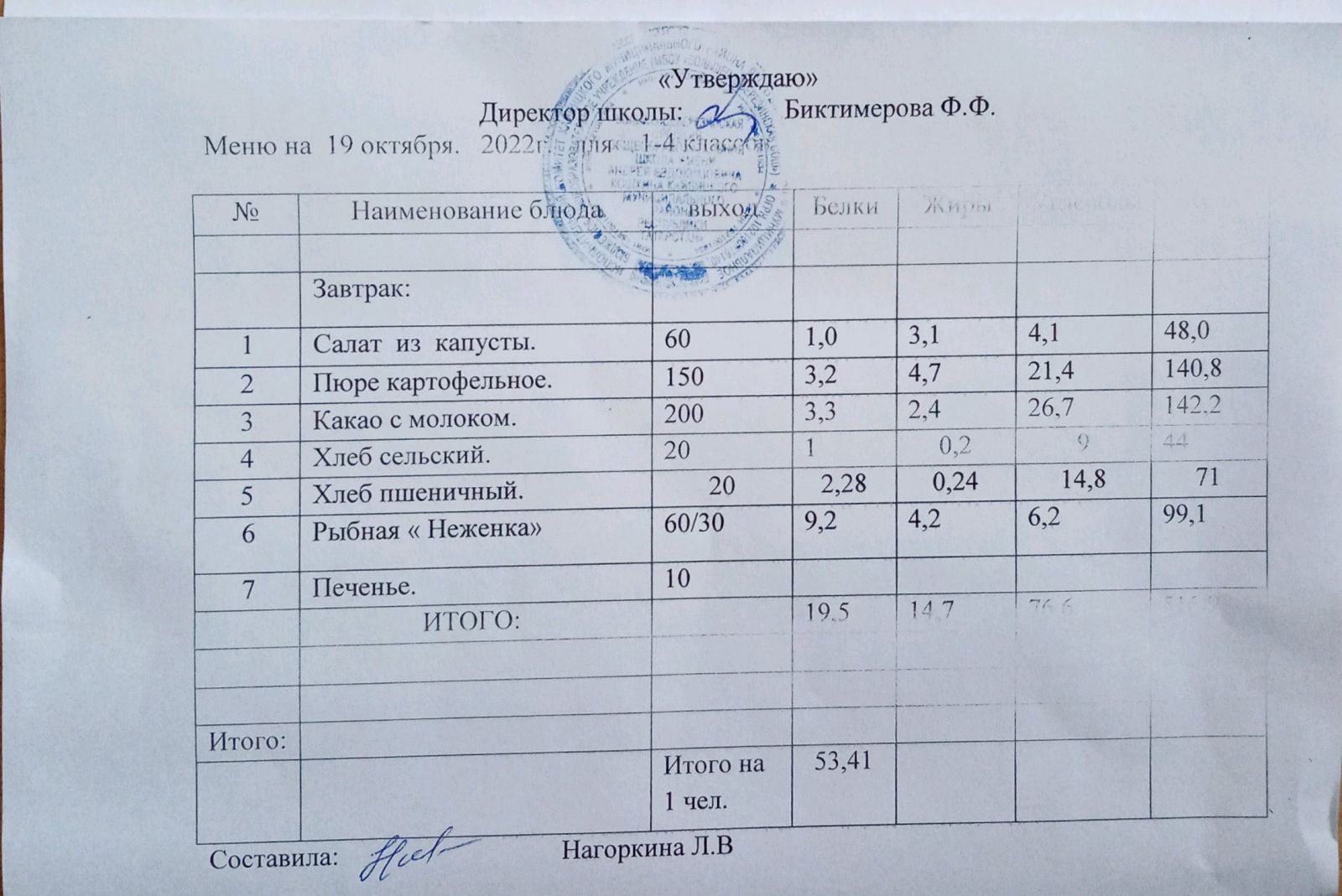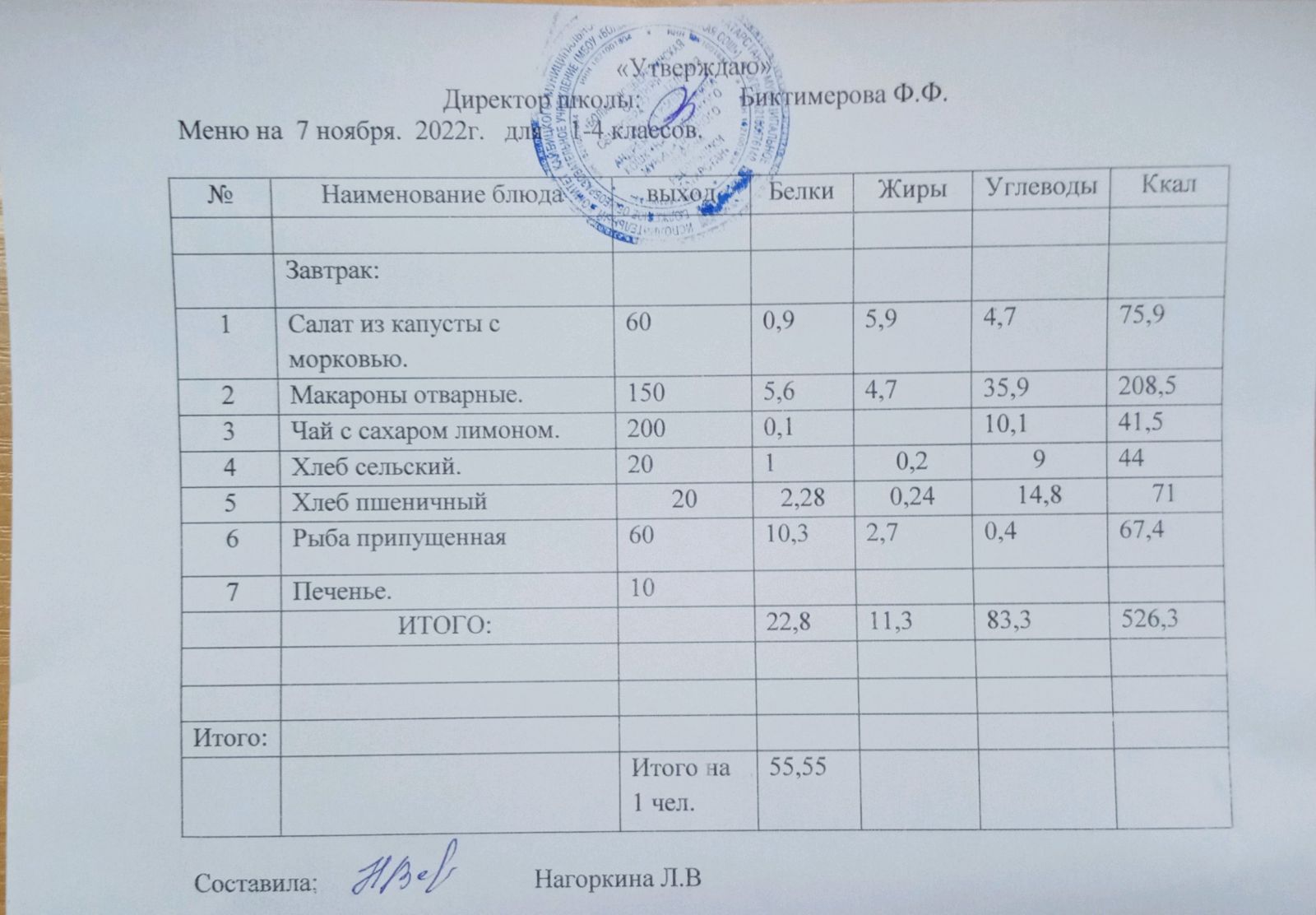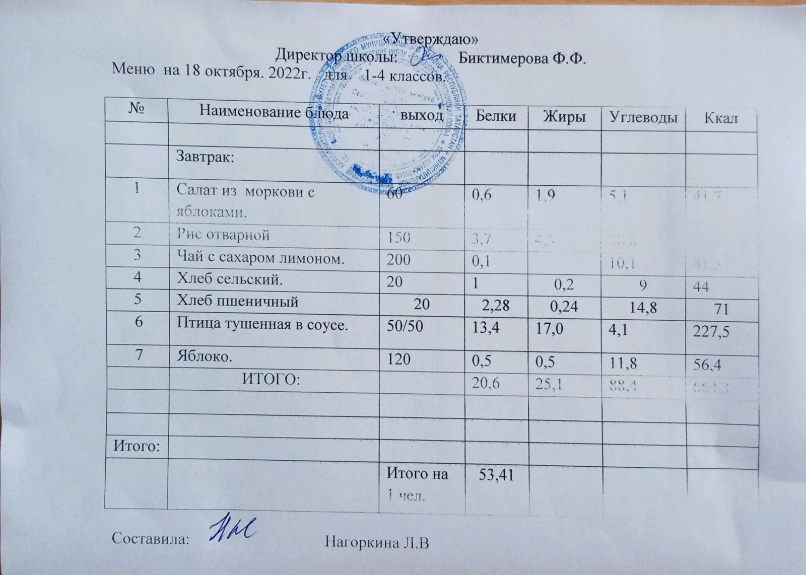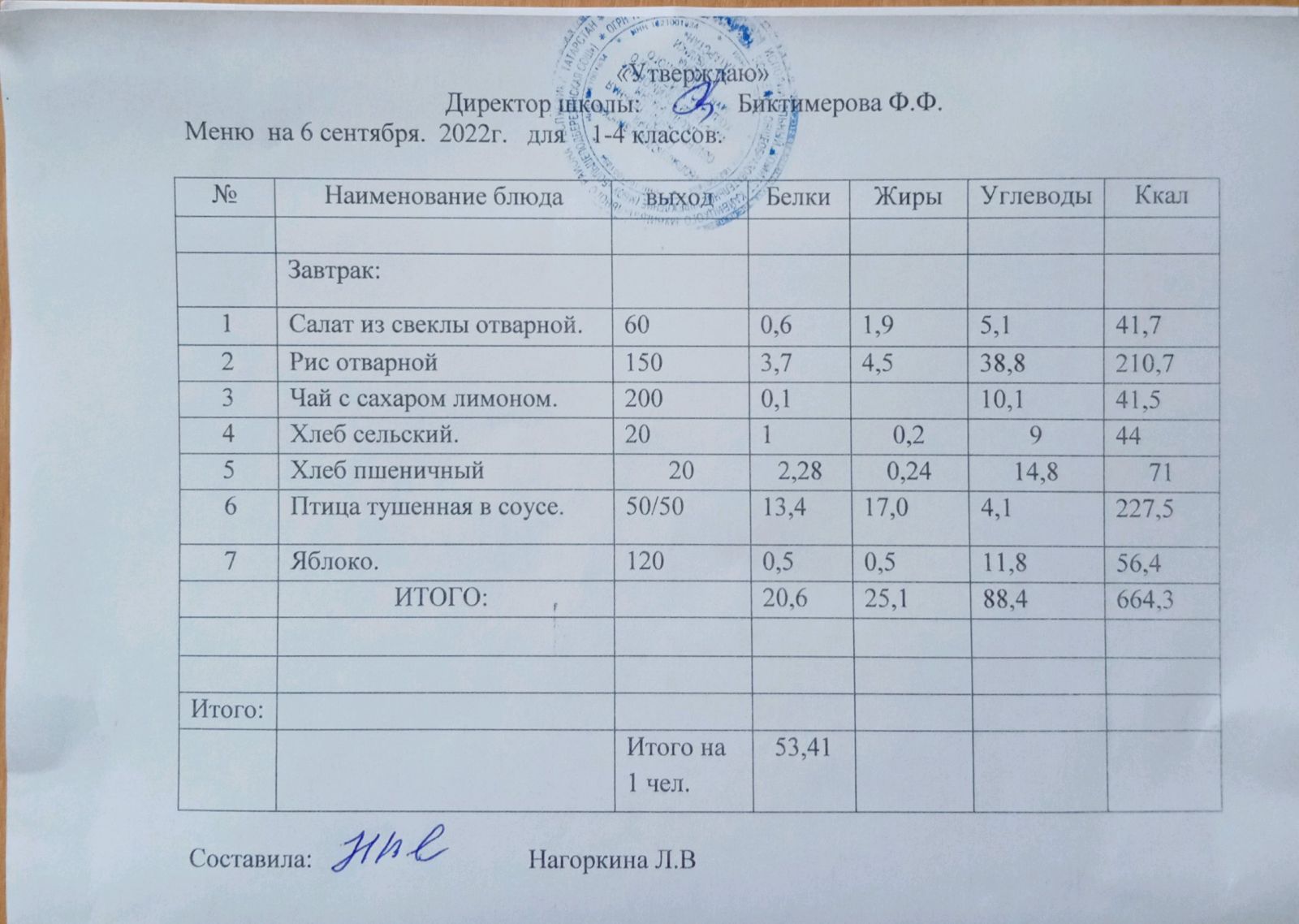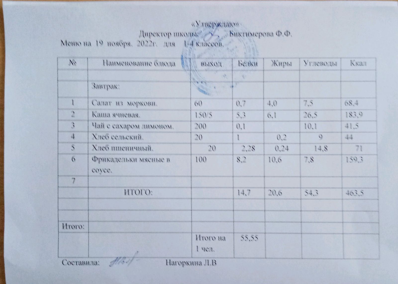 Ежедневное меню, 1-4 классы