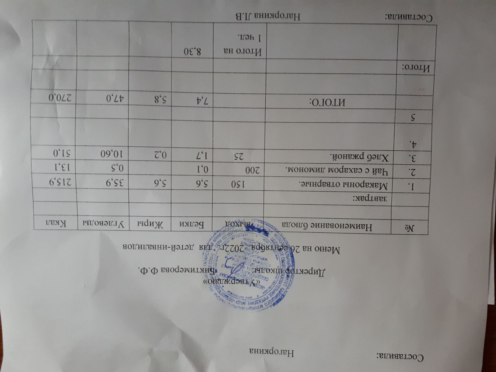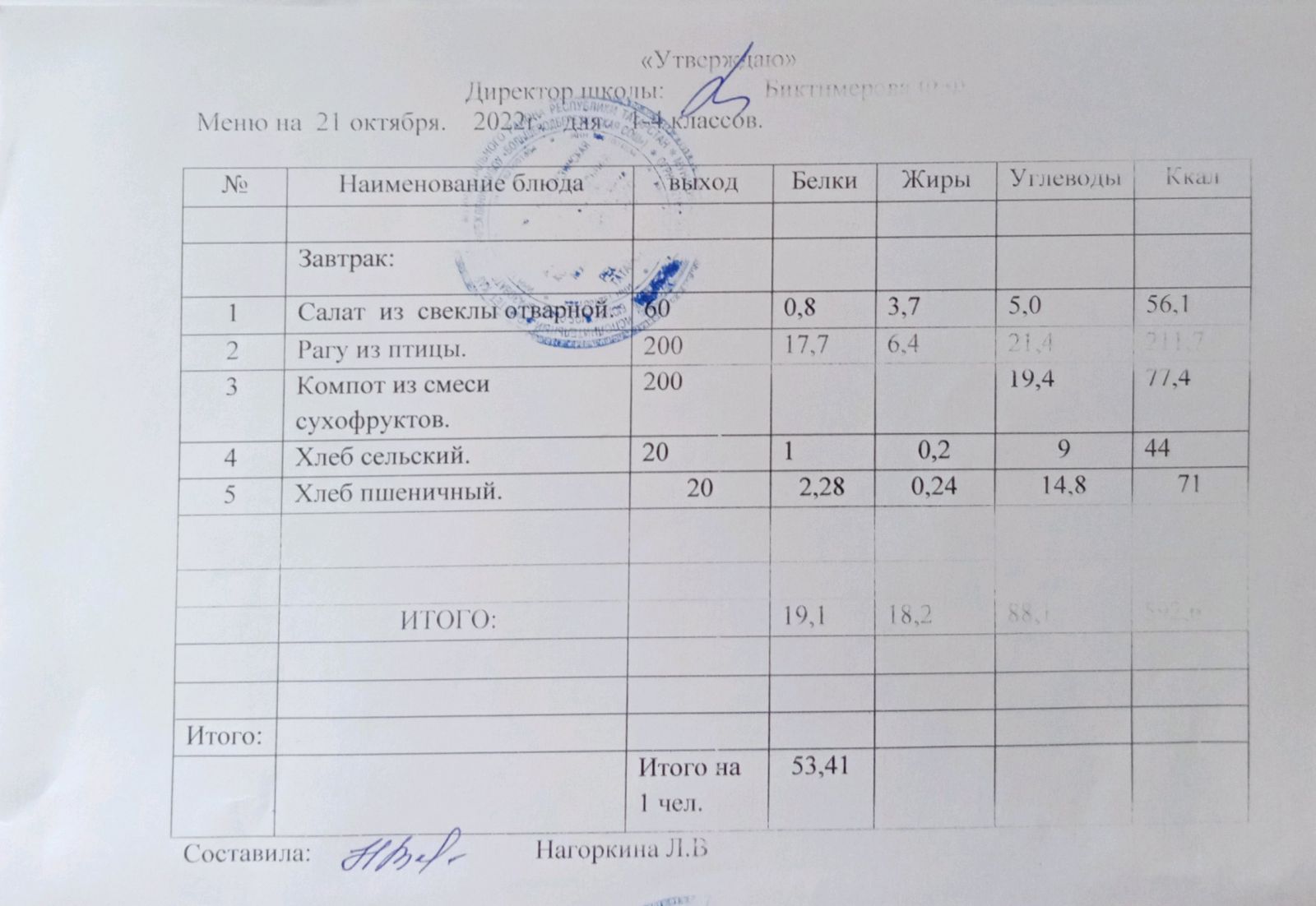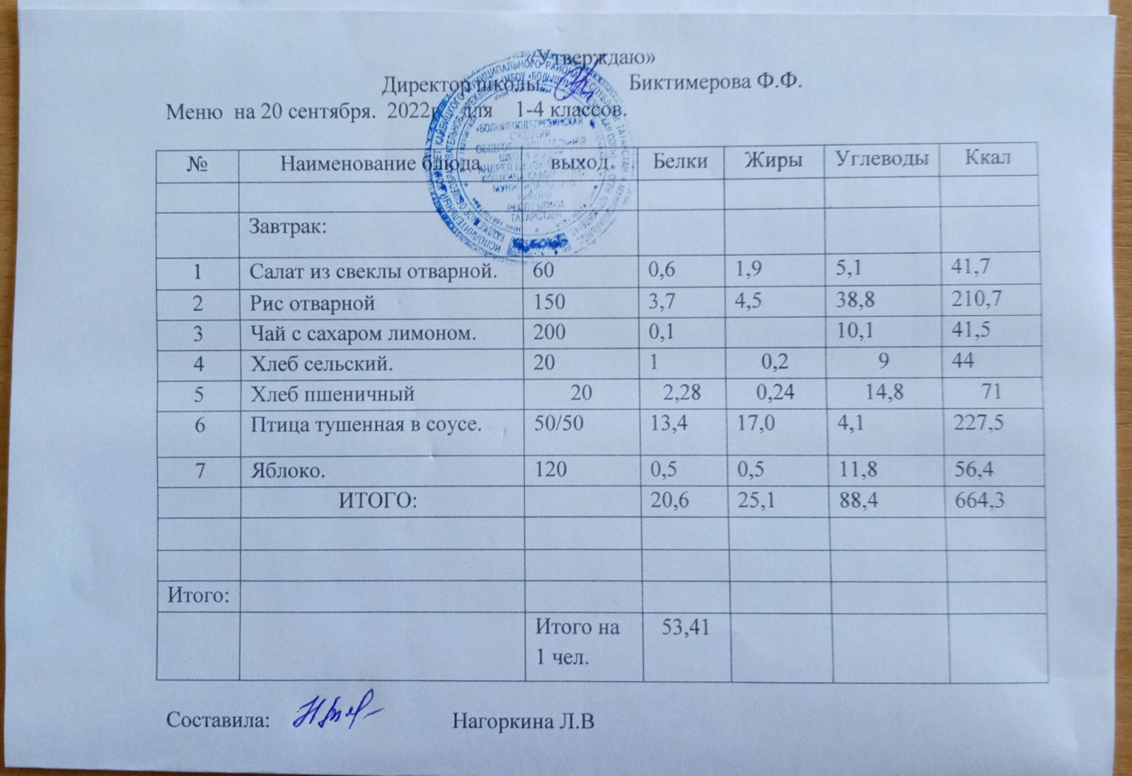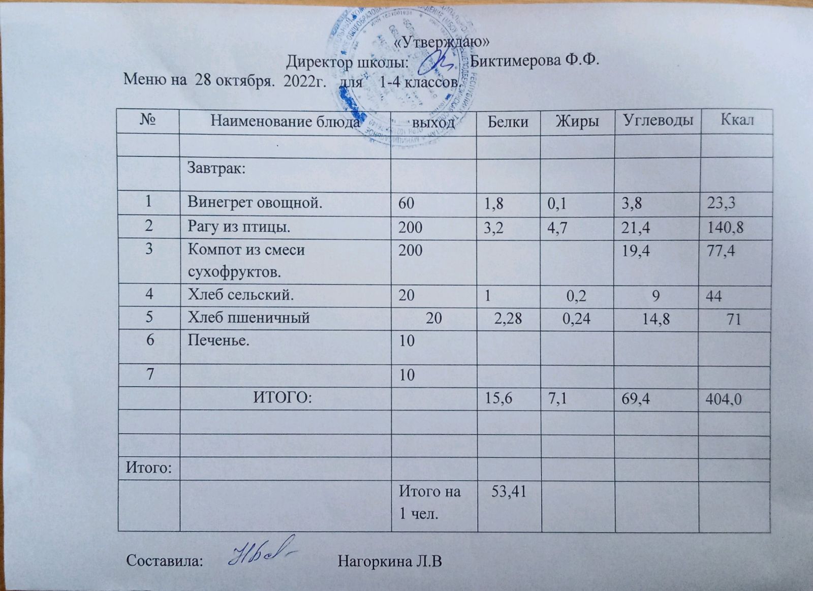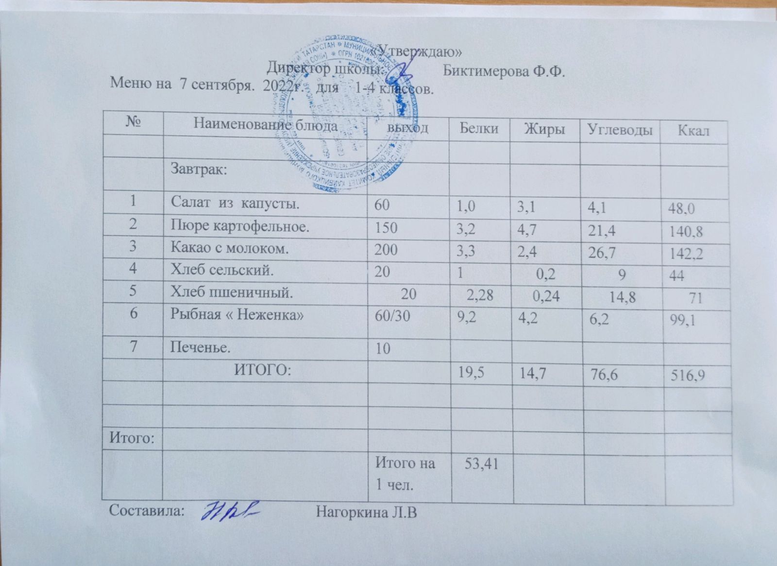 Ежедневное меню, 1-4 классы
