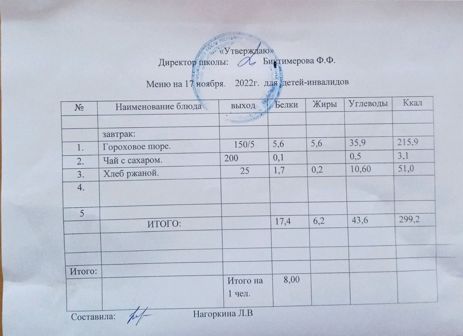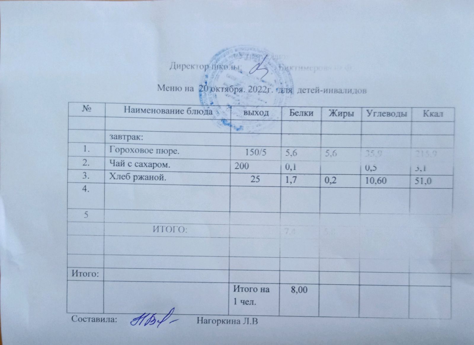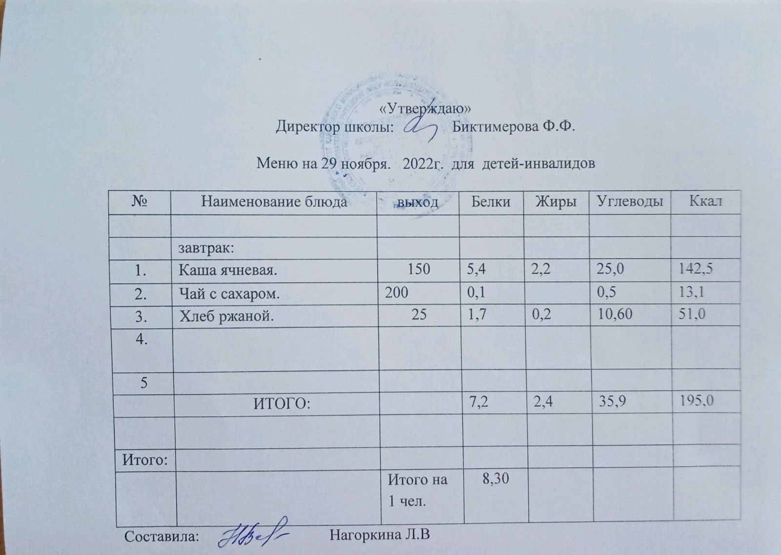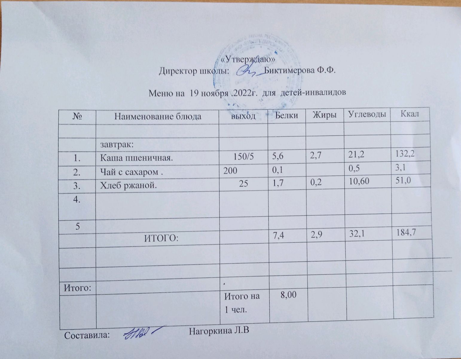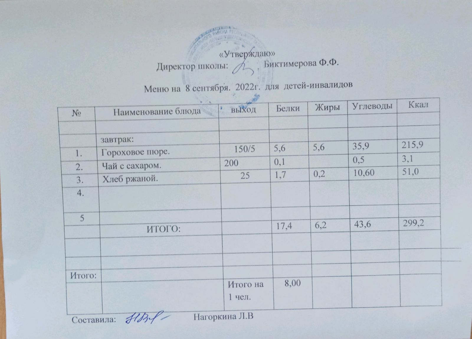 Меню для детей-инвалидов