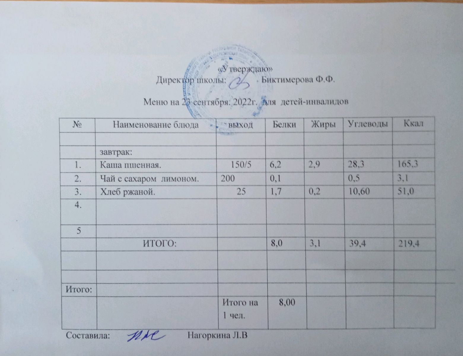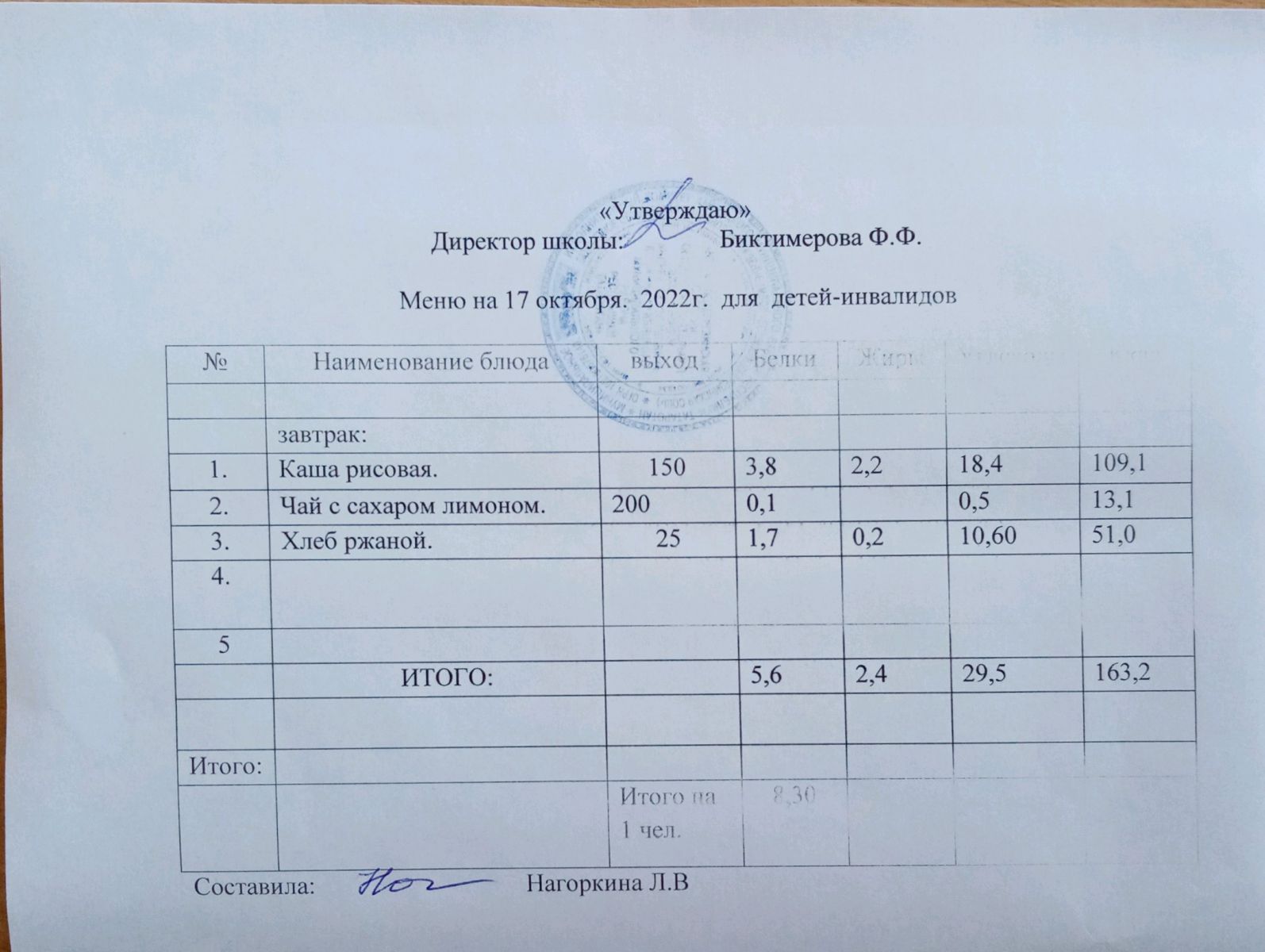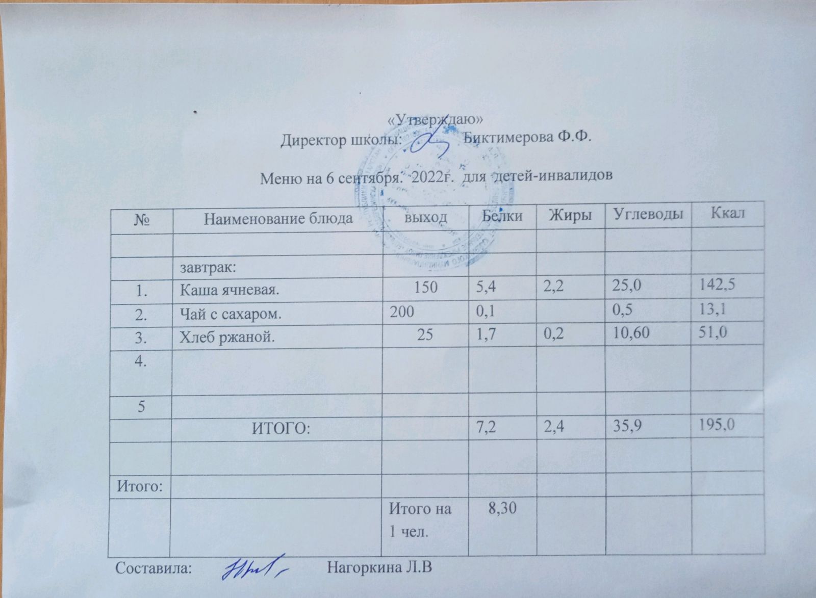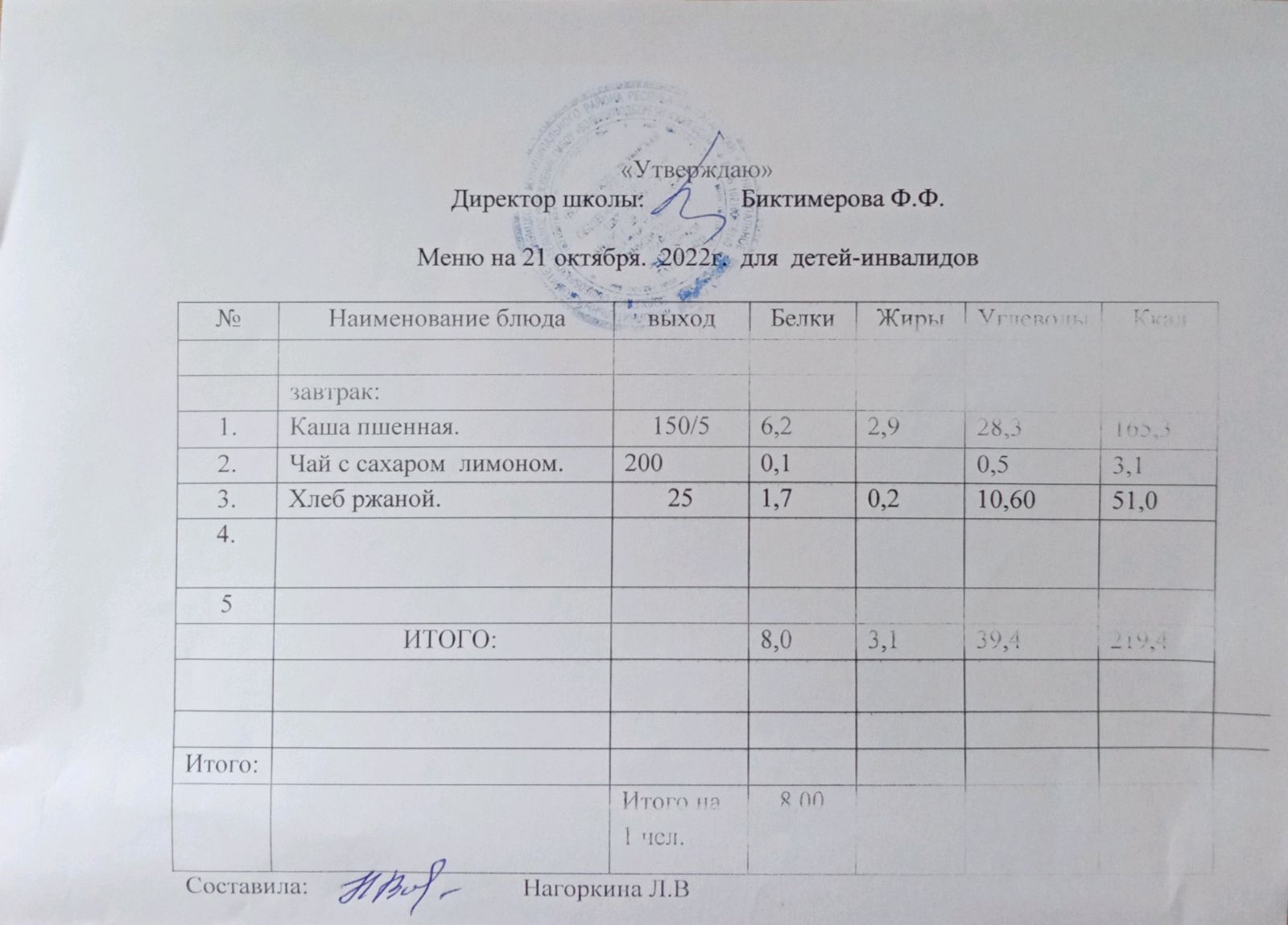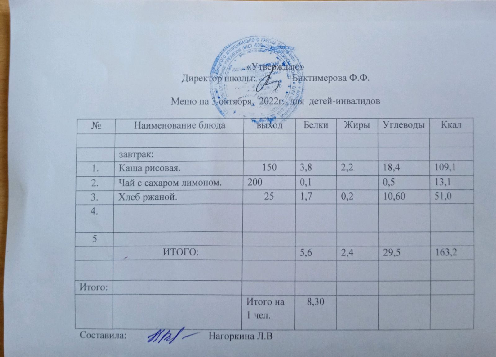 Меню для детей-инвалидов