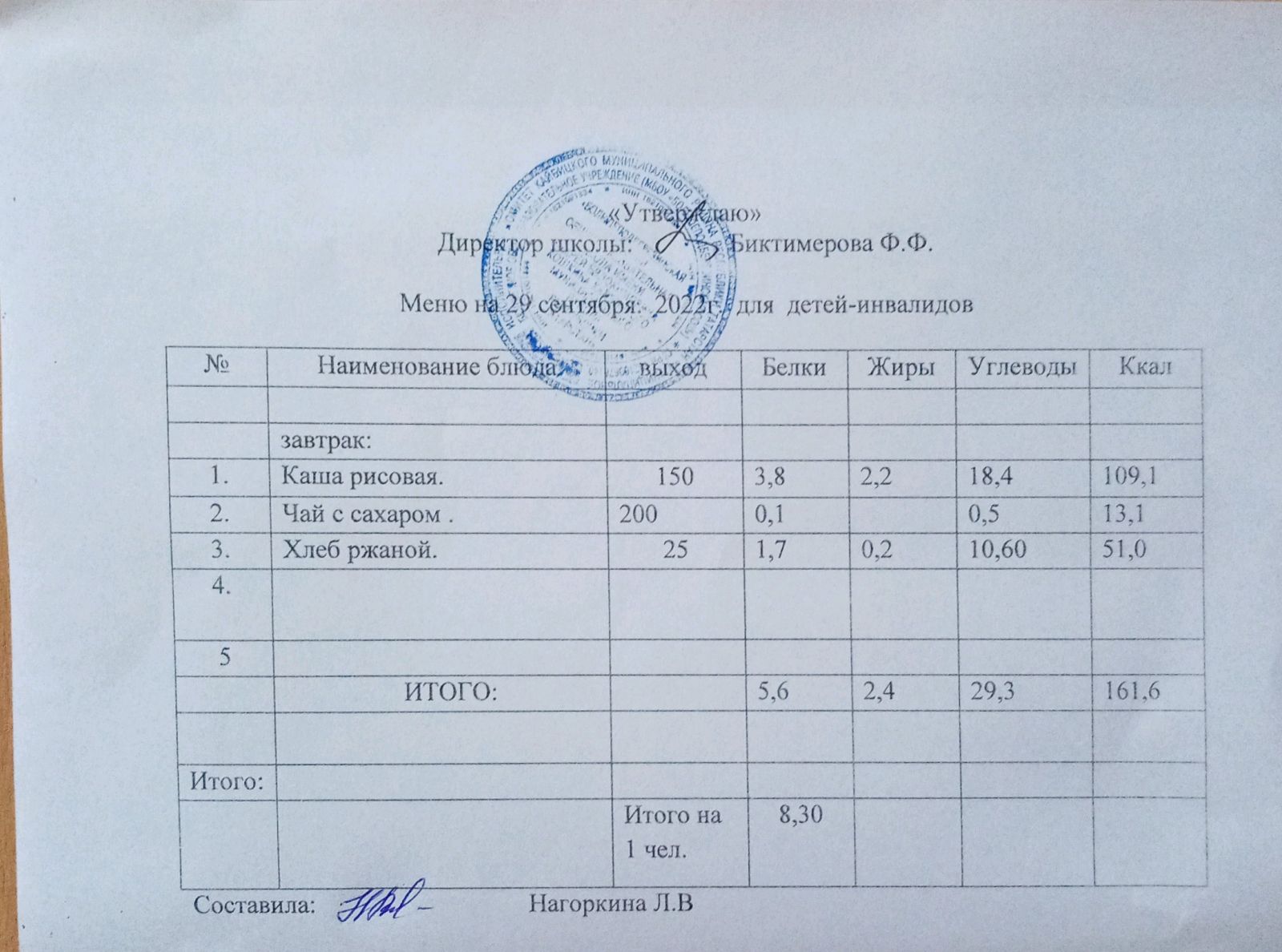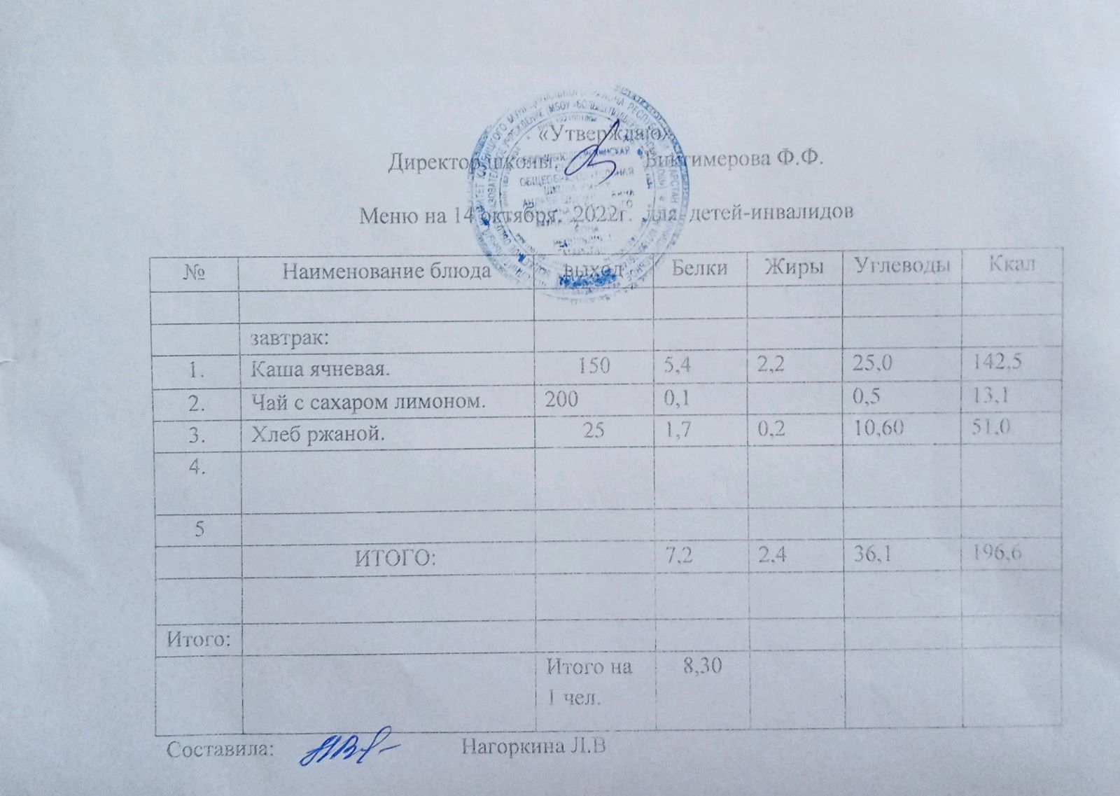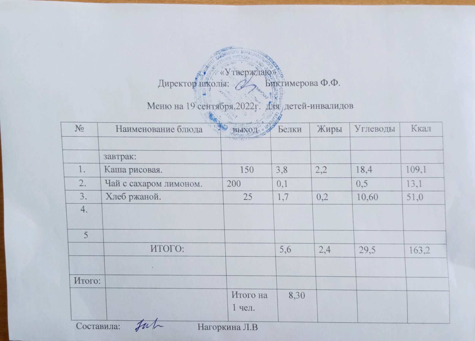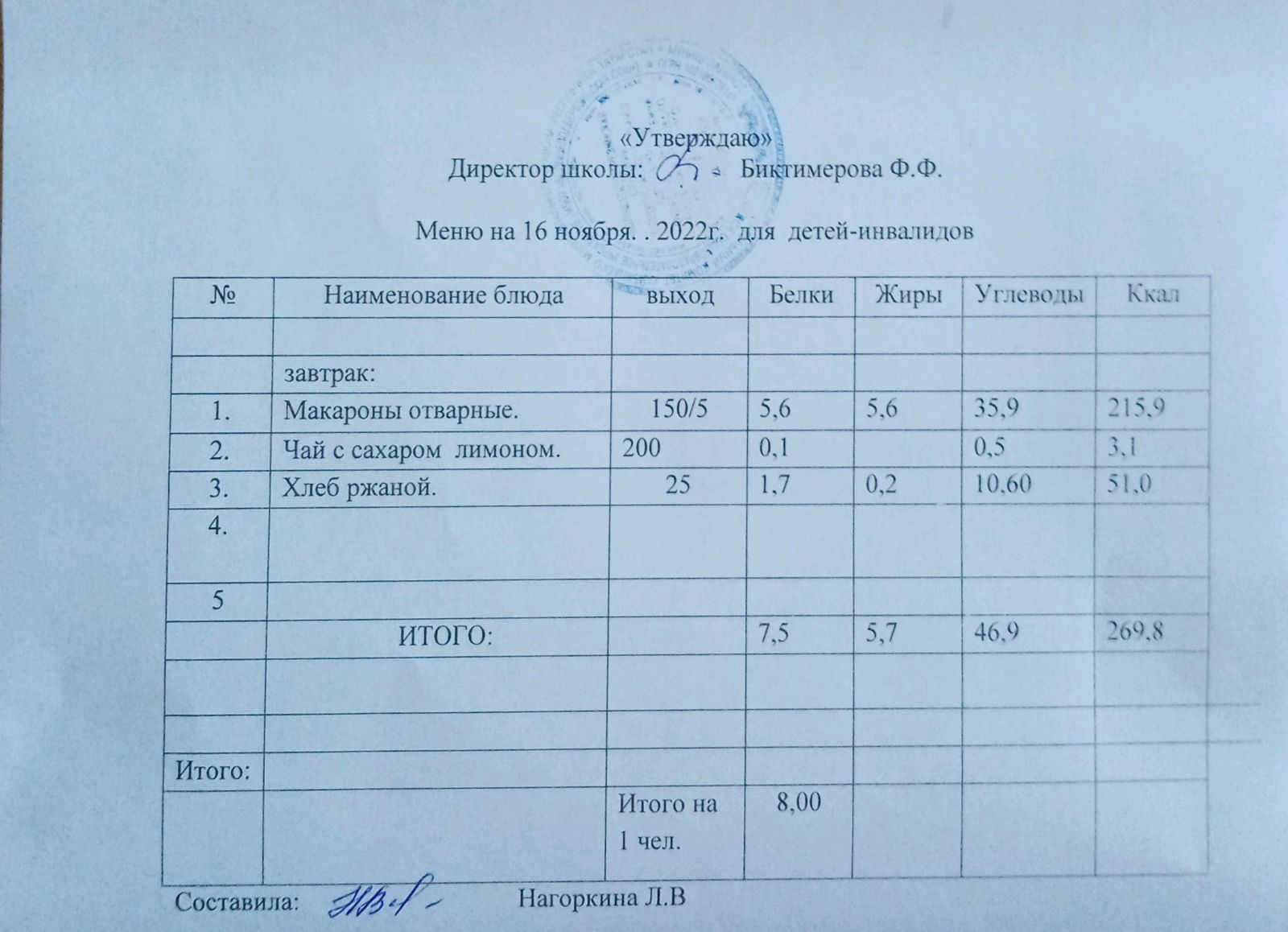 Меню для детей-инвалидов