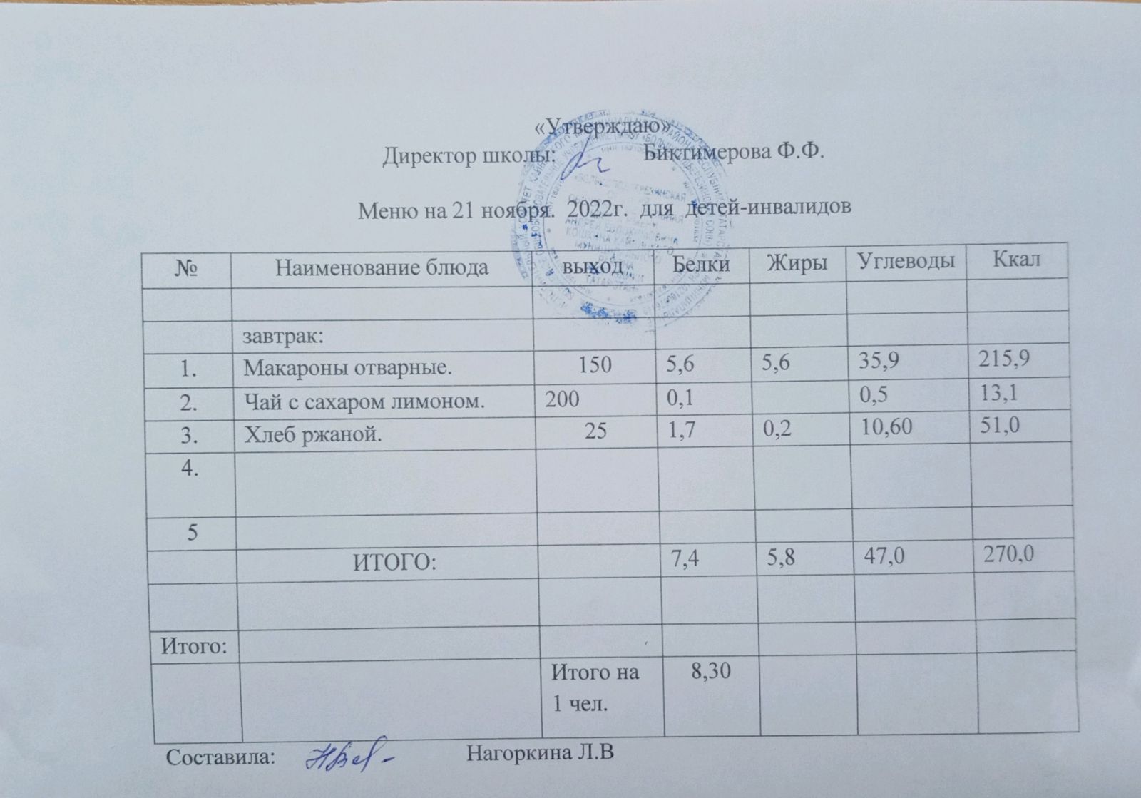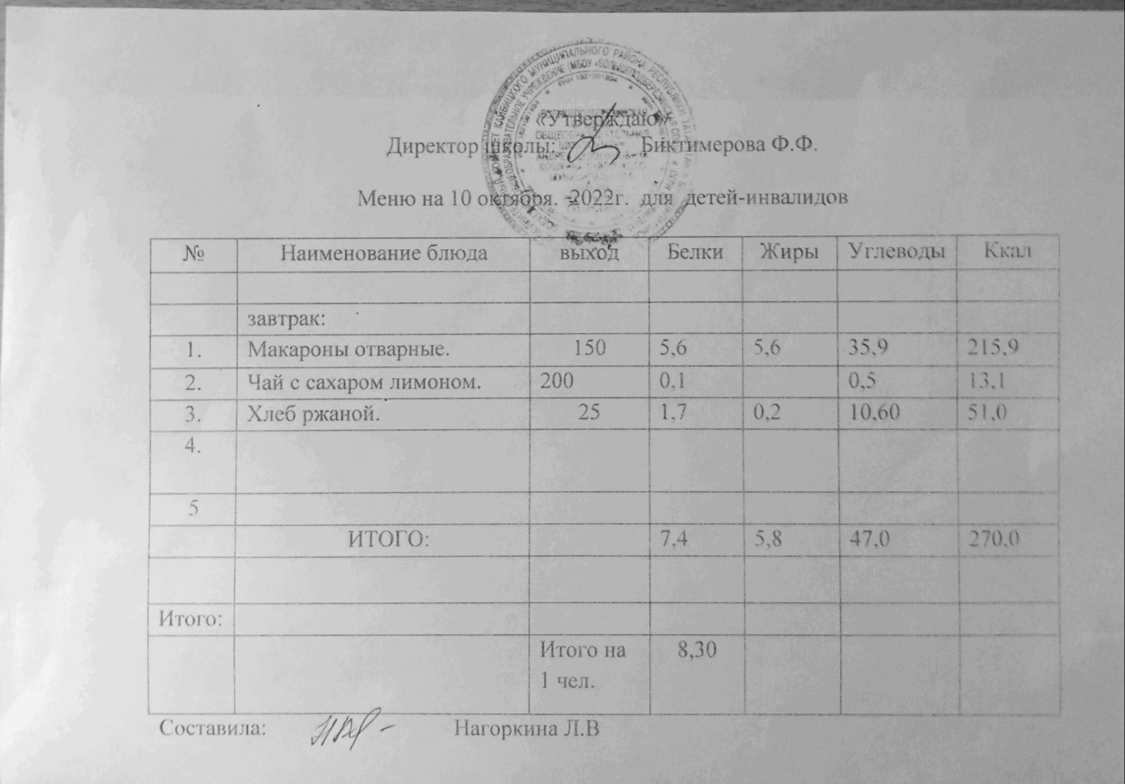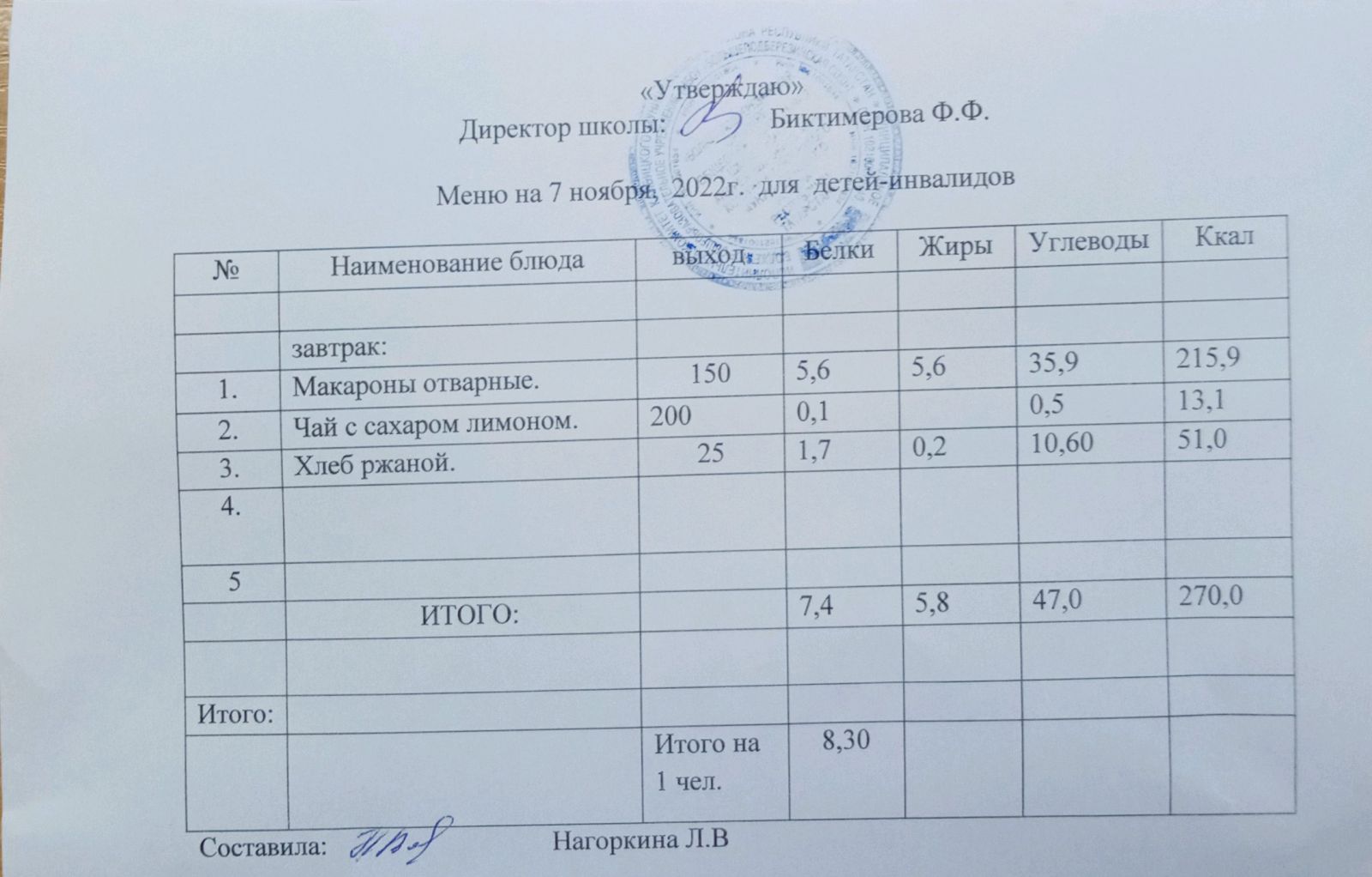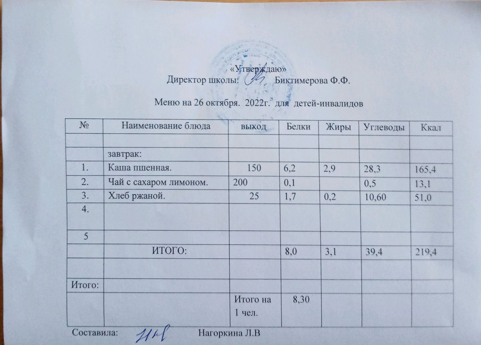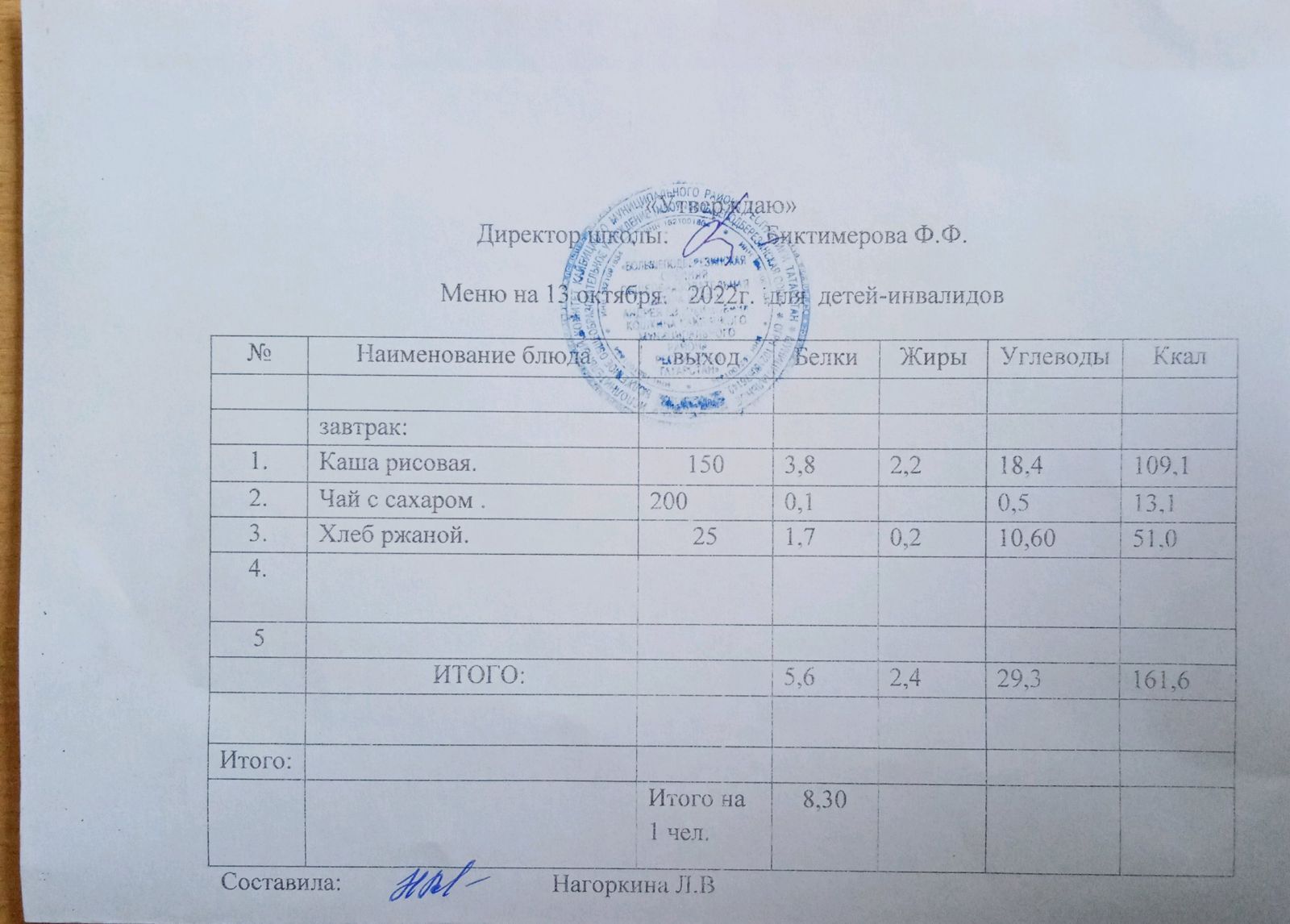 Меню для детей-инвалидов