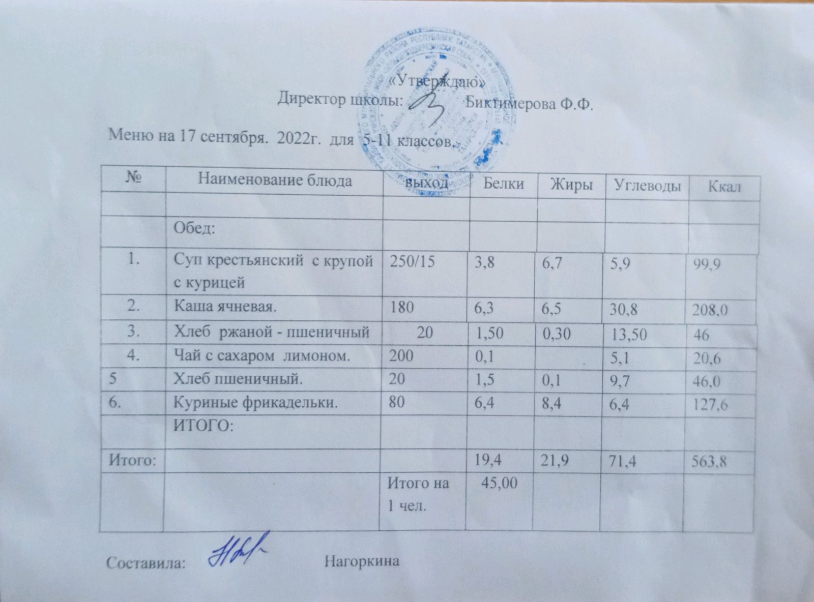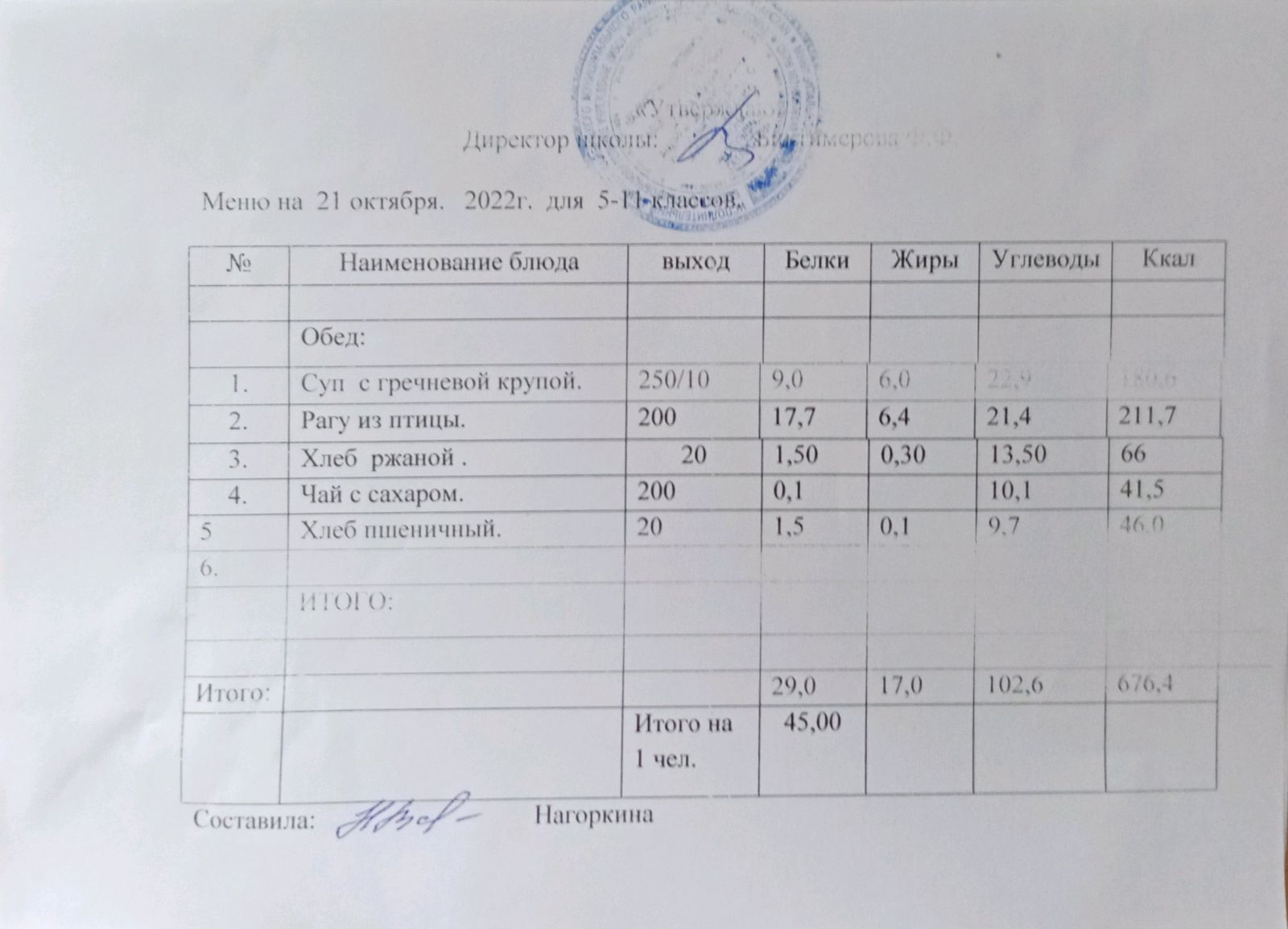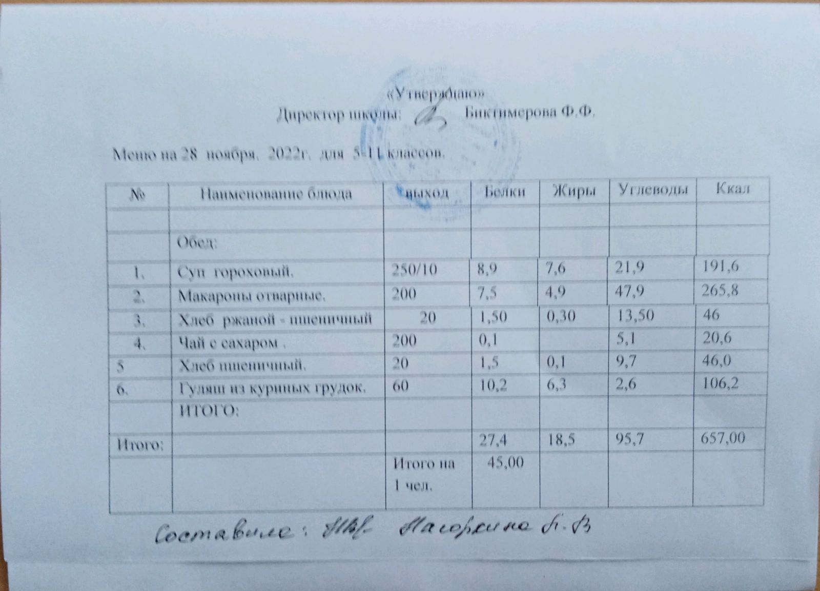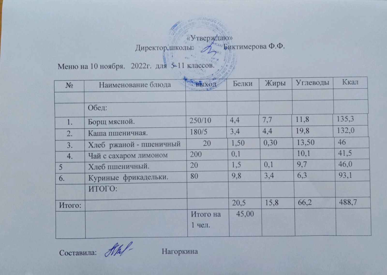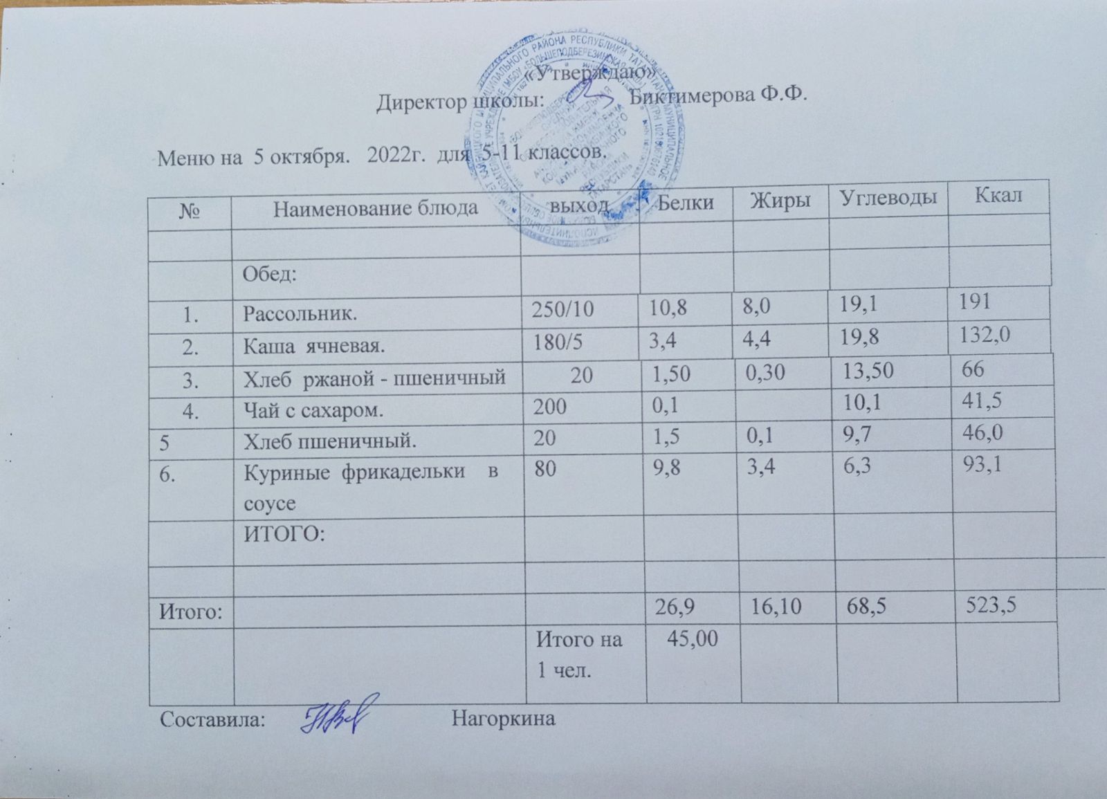 Ежедневное меню, 5-11 классы