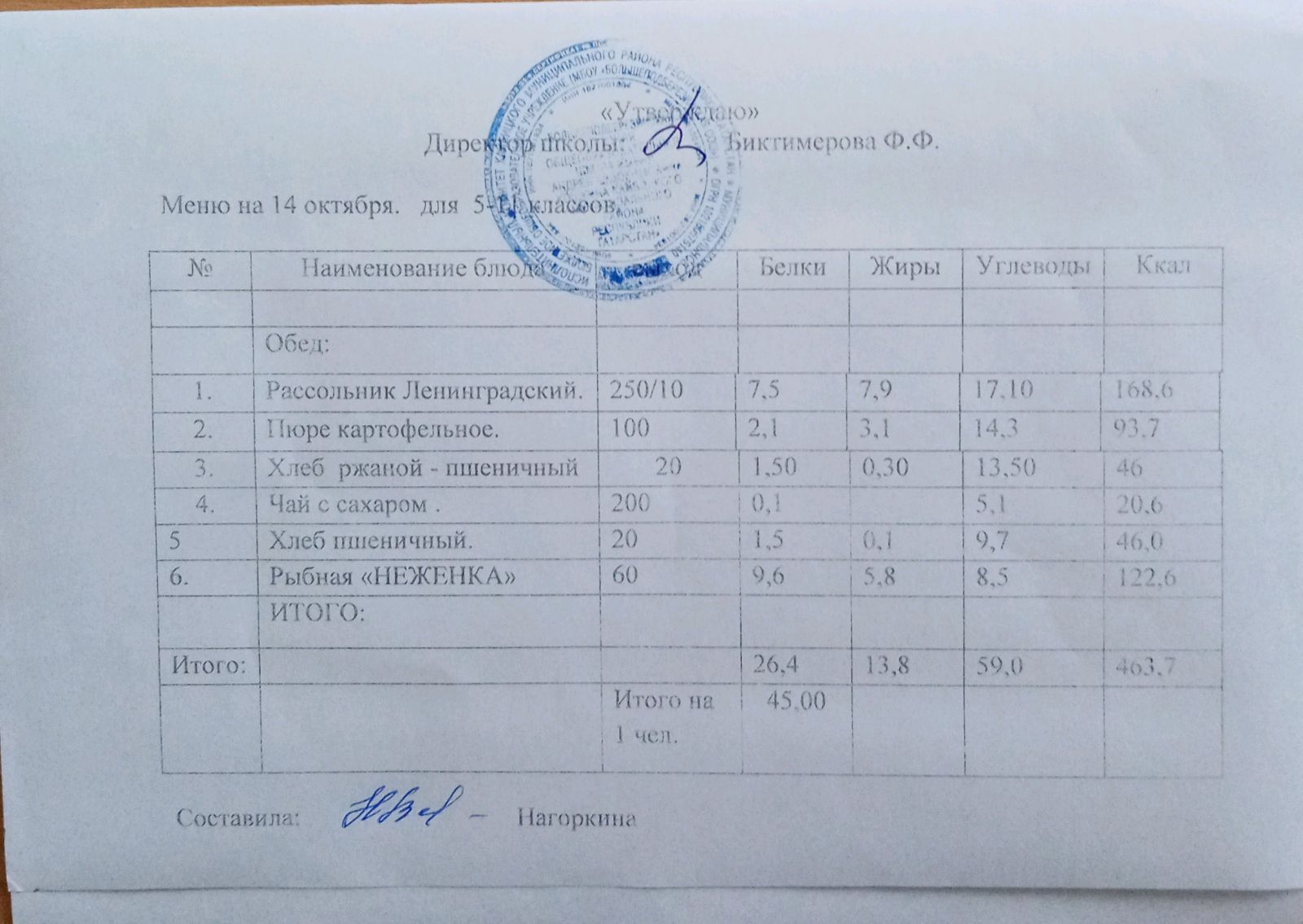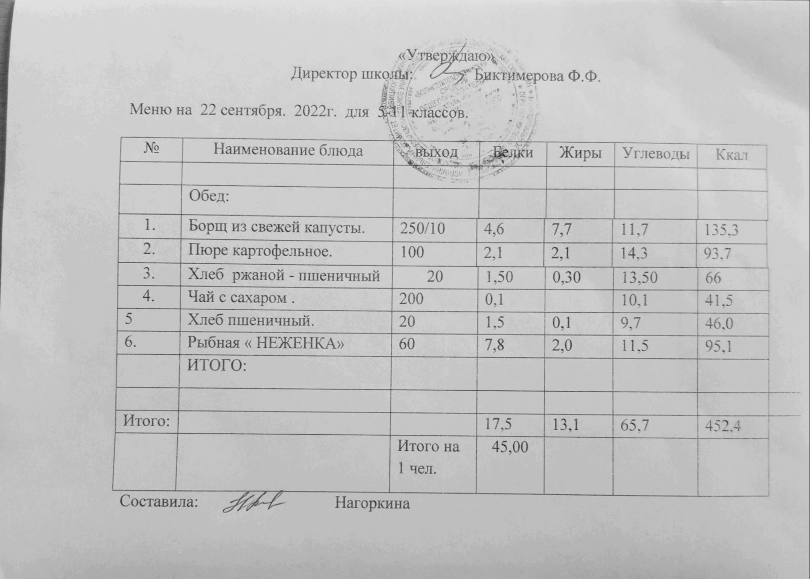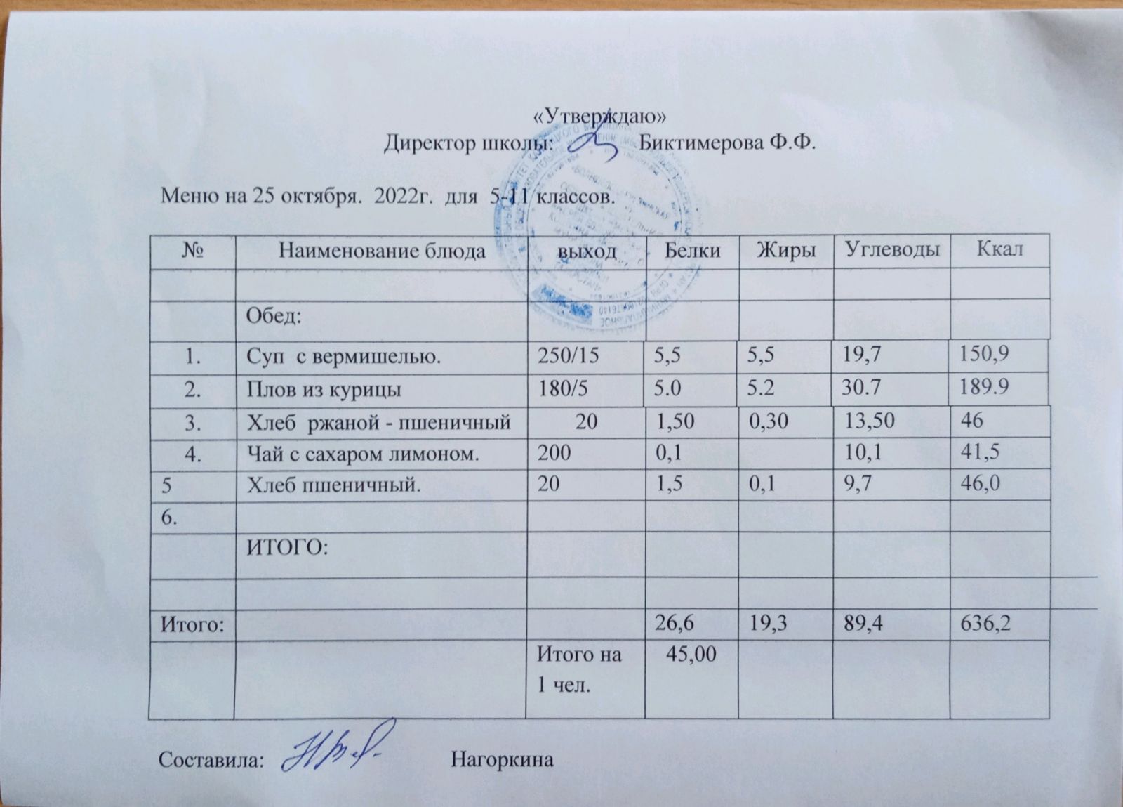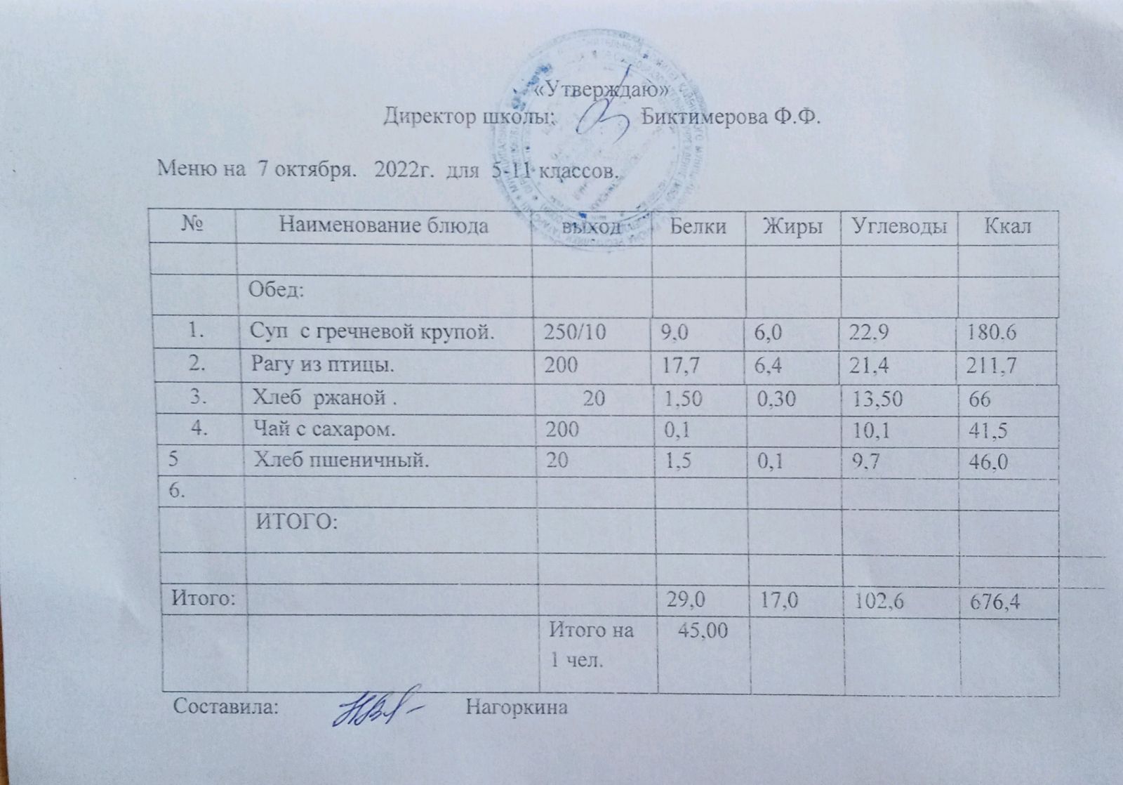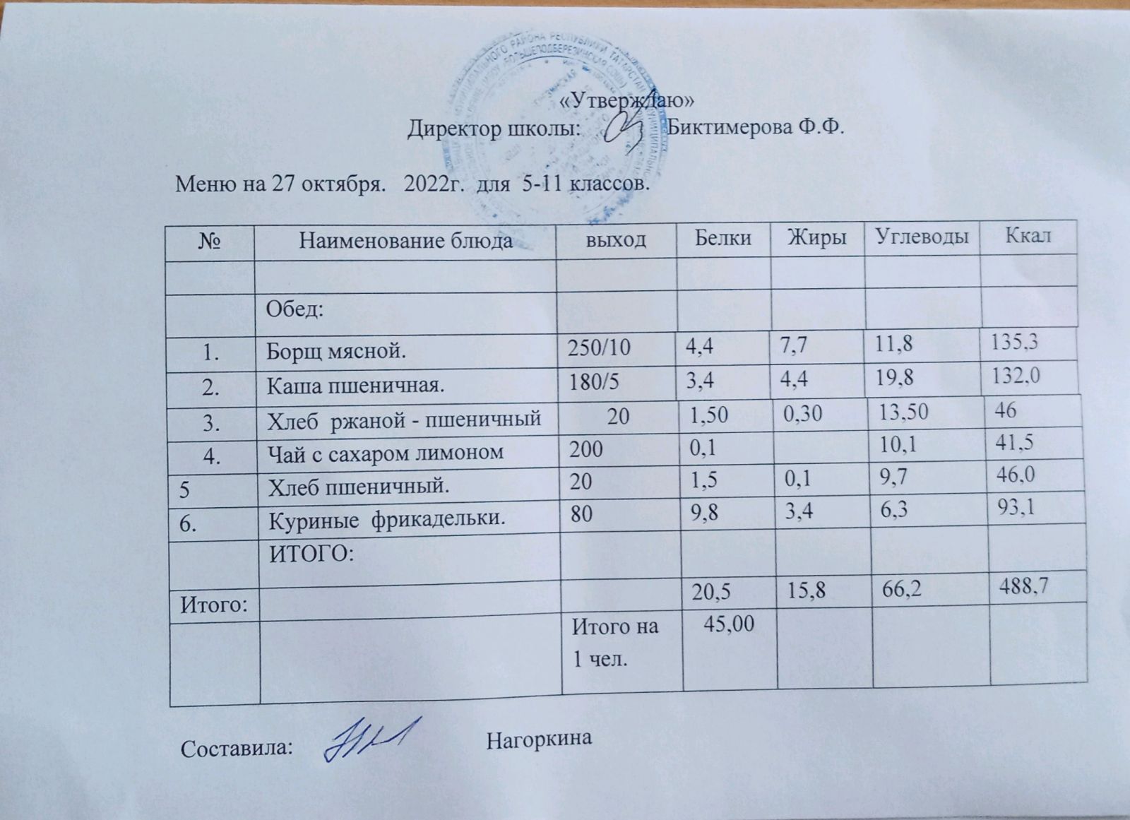 Ежедневное меню, 5-11 классы