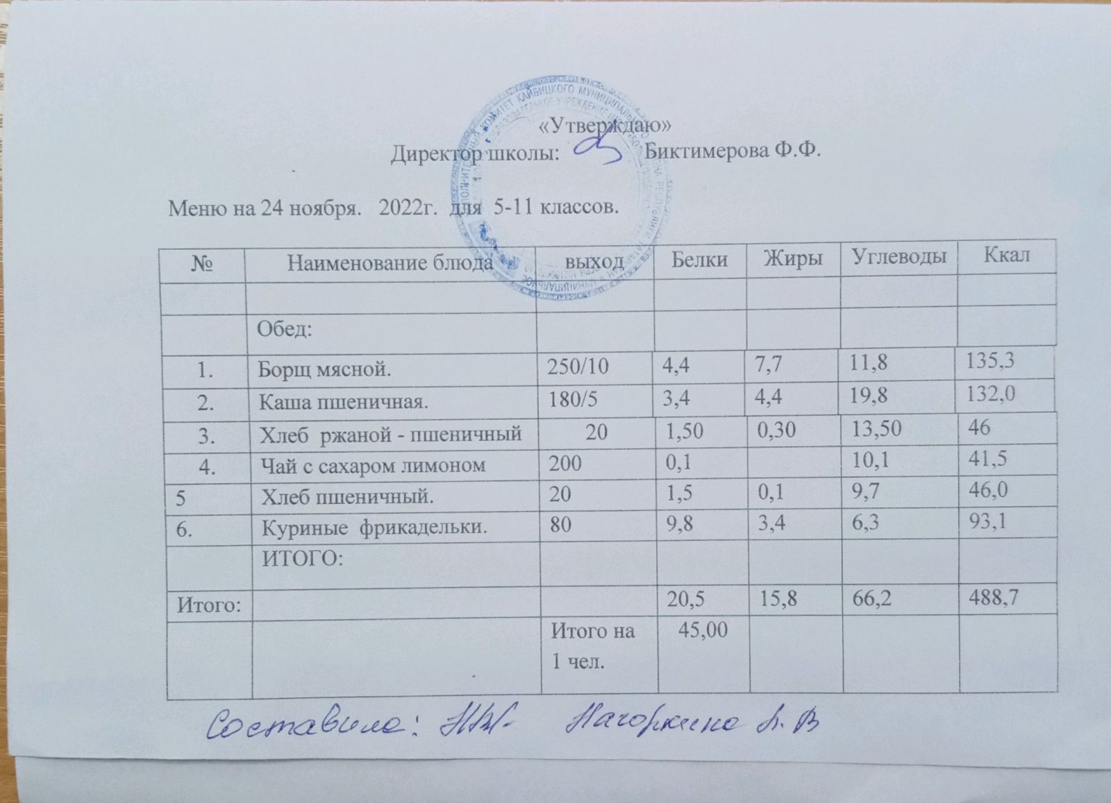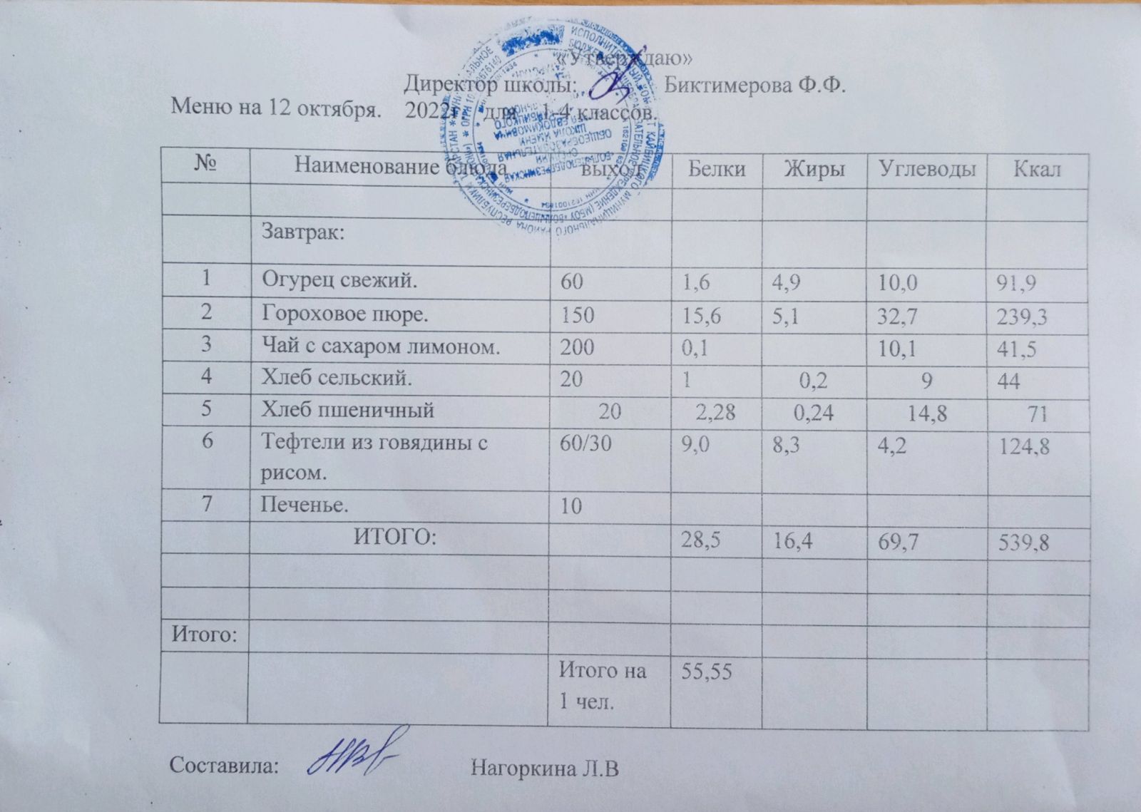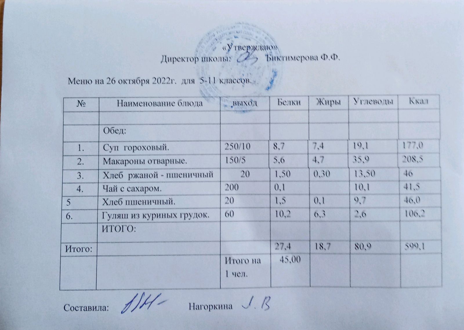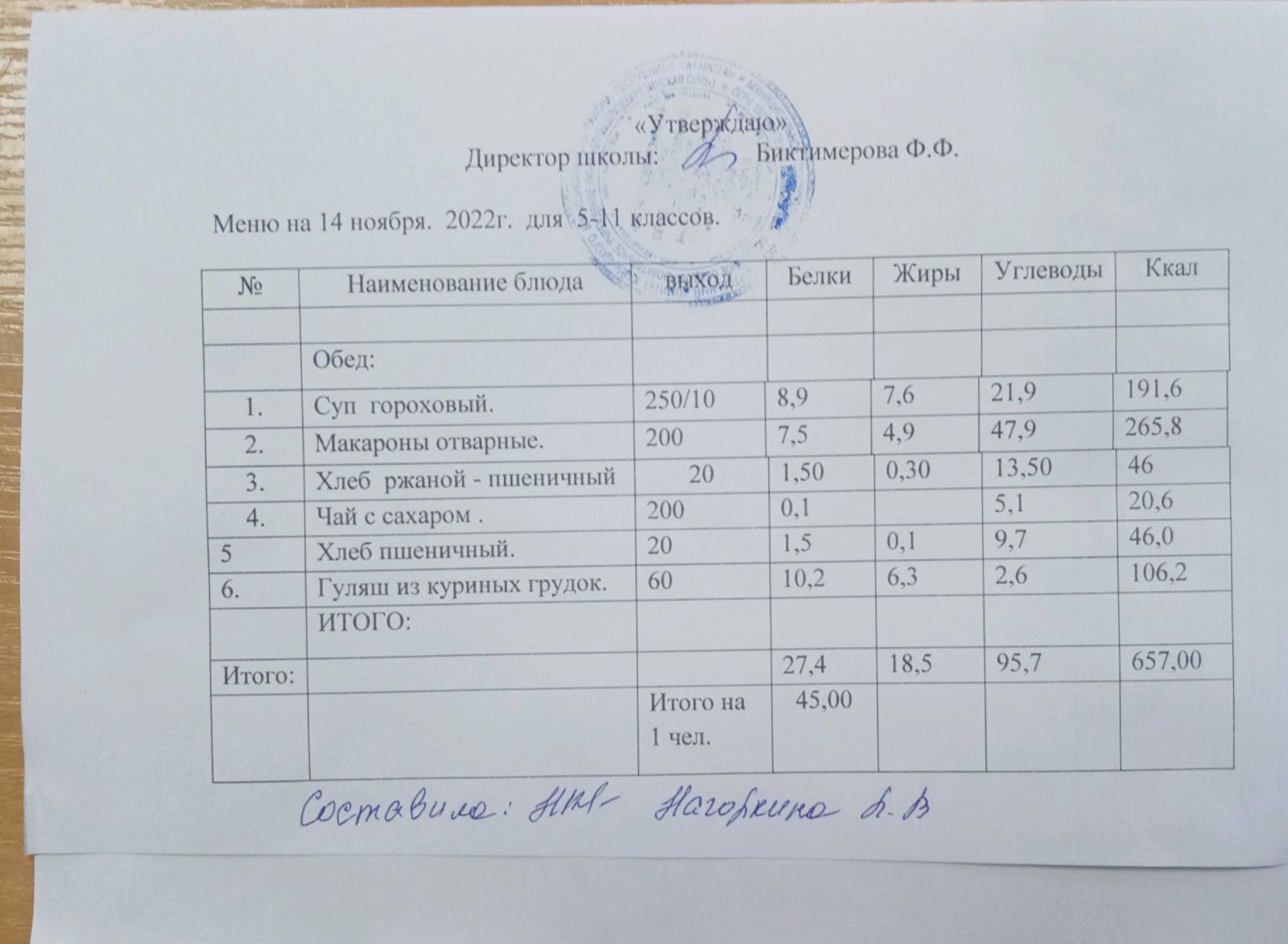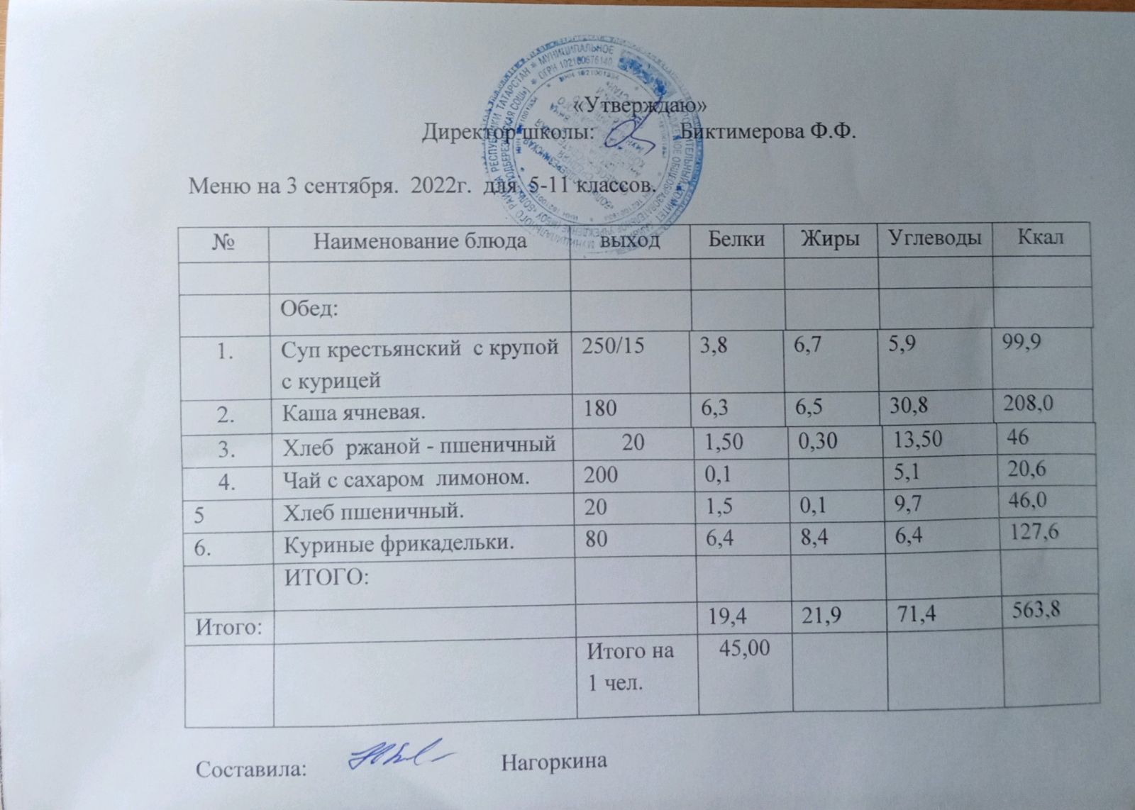 Ежедневное меню, 5-11 классы