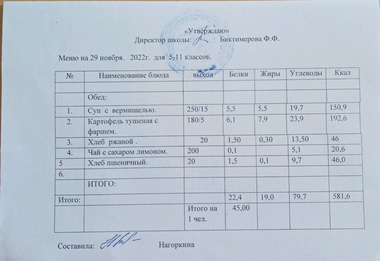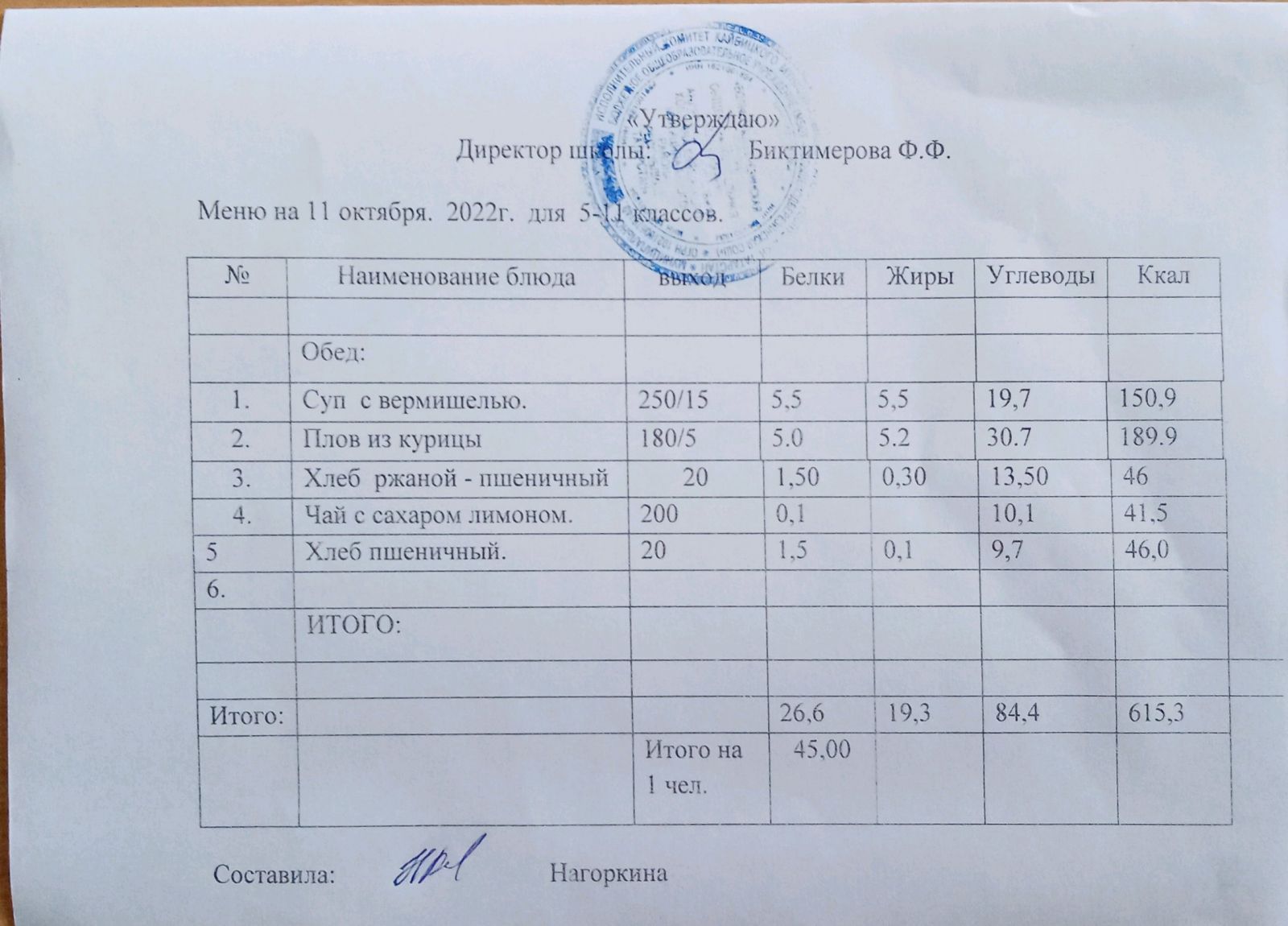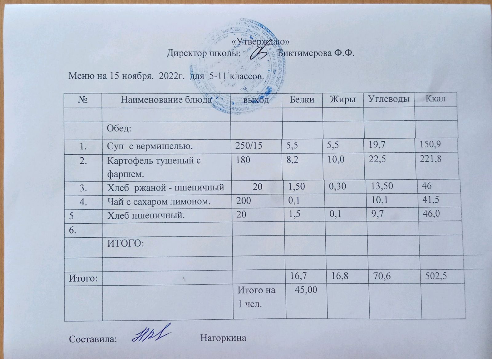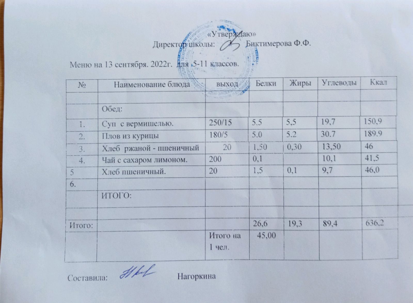Ежедневное меню, 5-11 классы