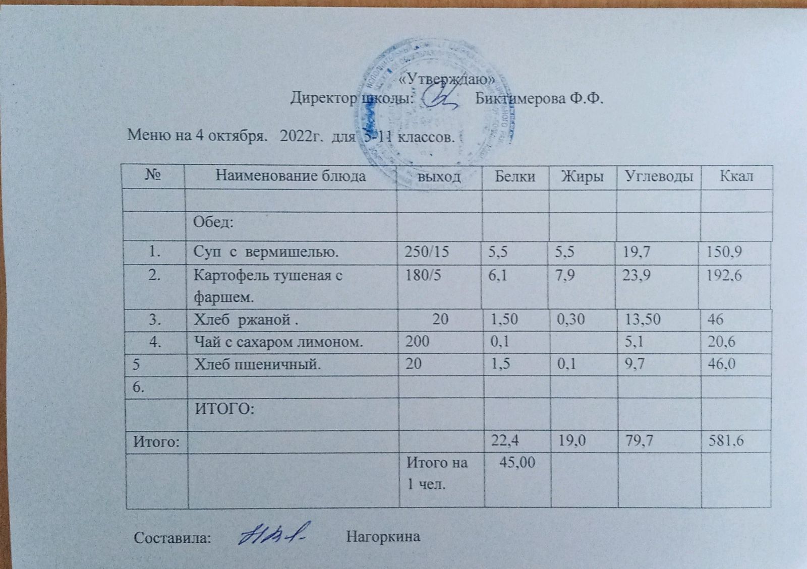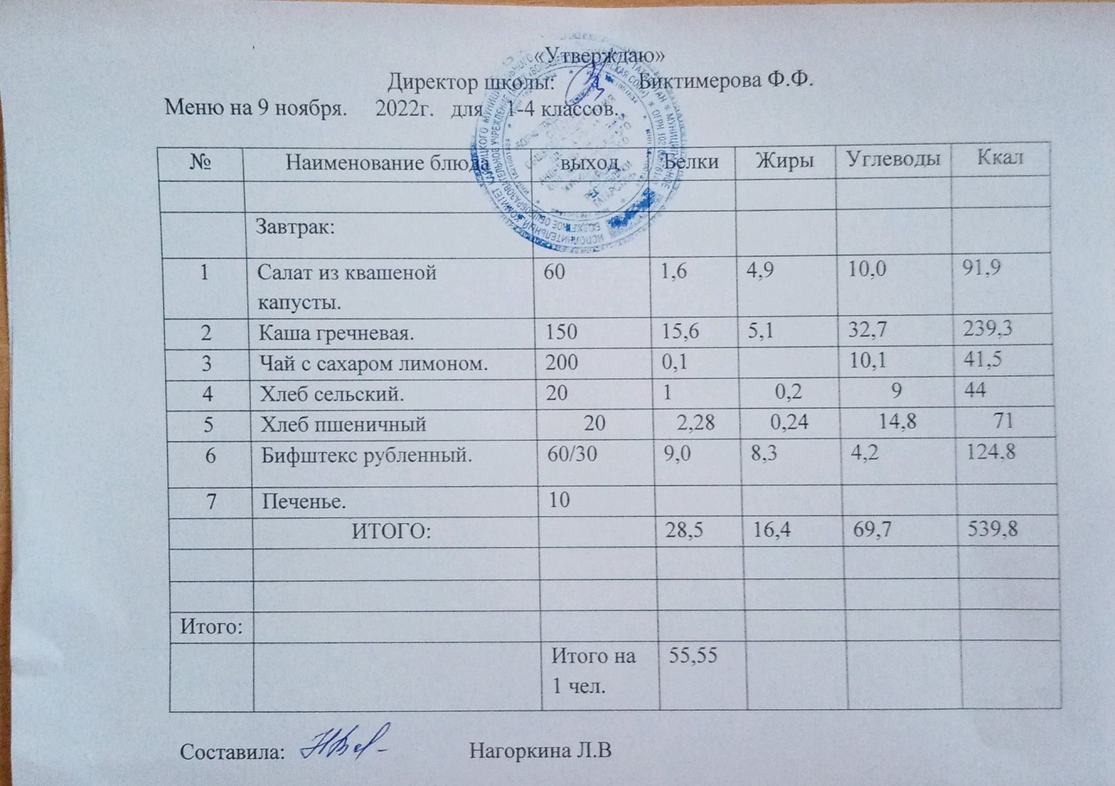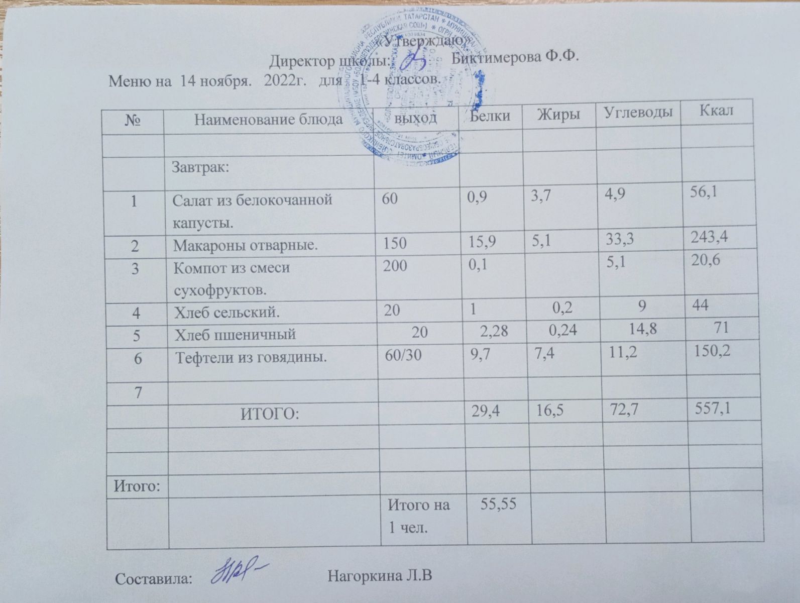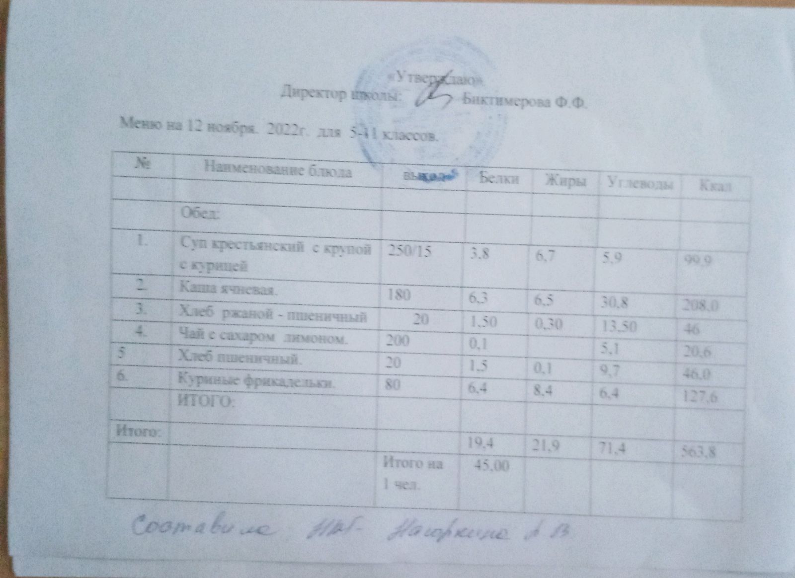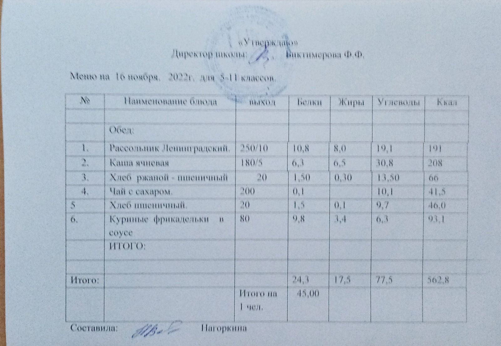 Ежедневное меню, 5-11 классы
