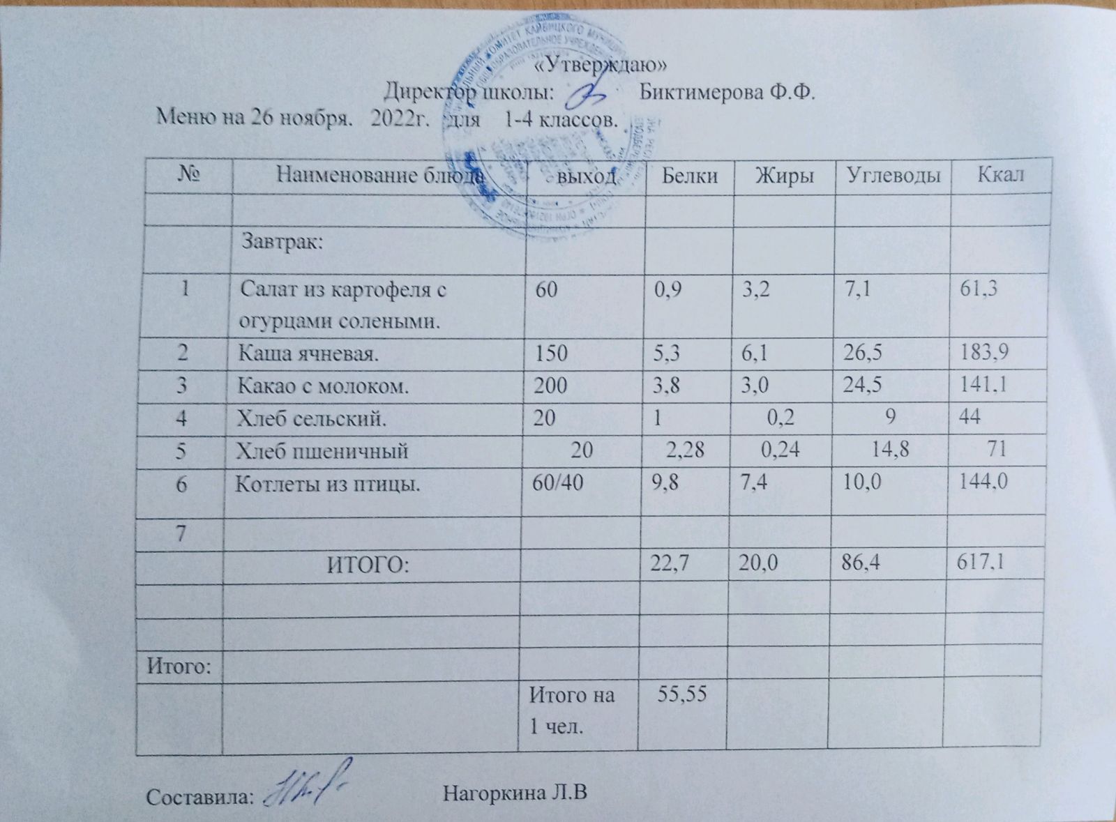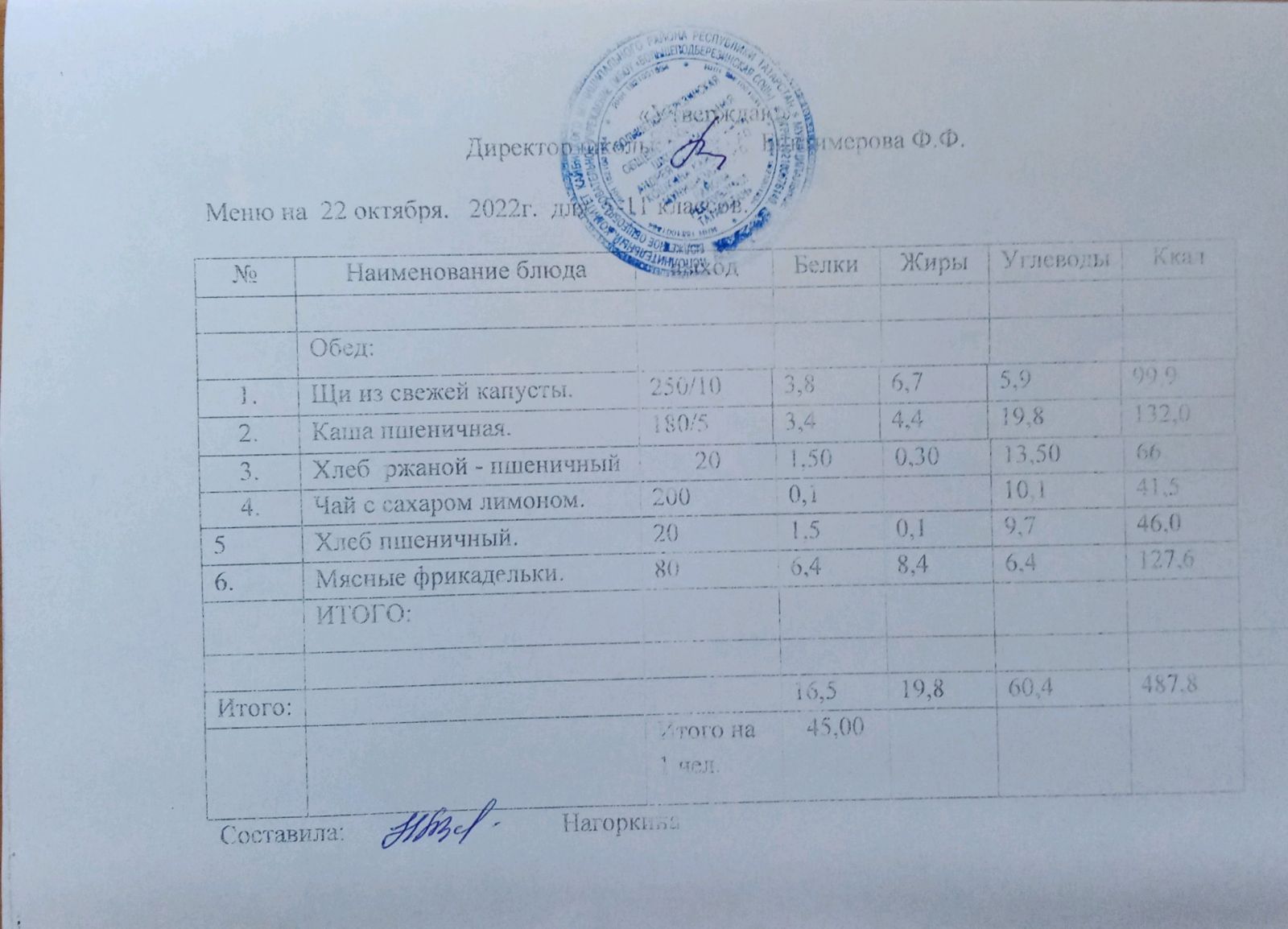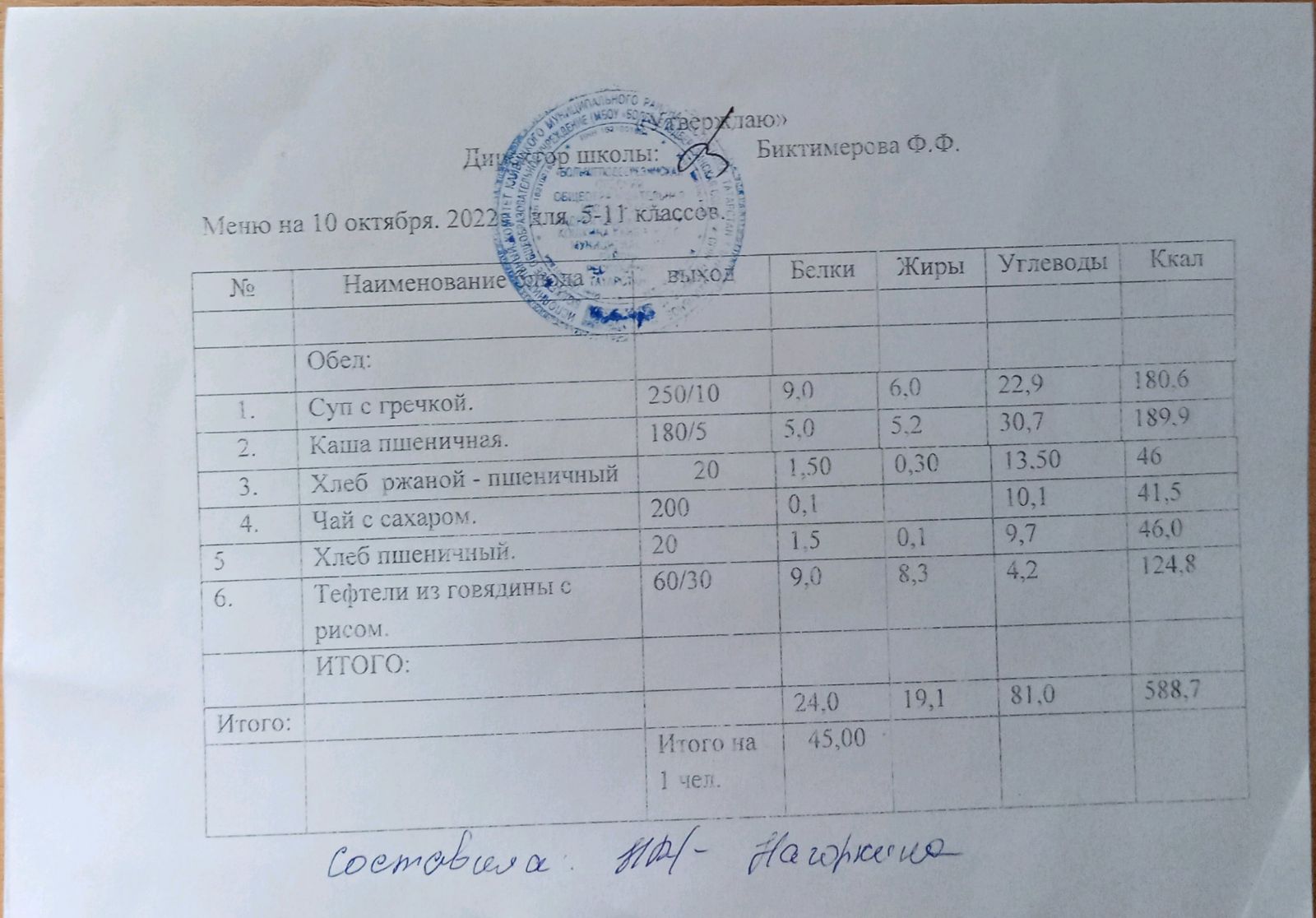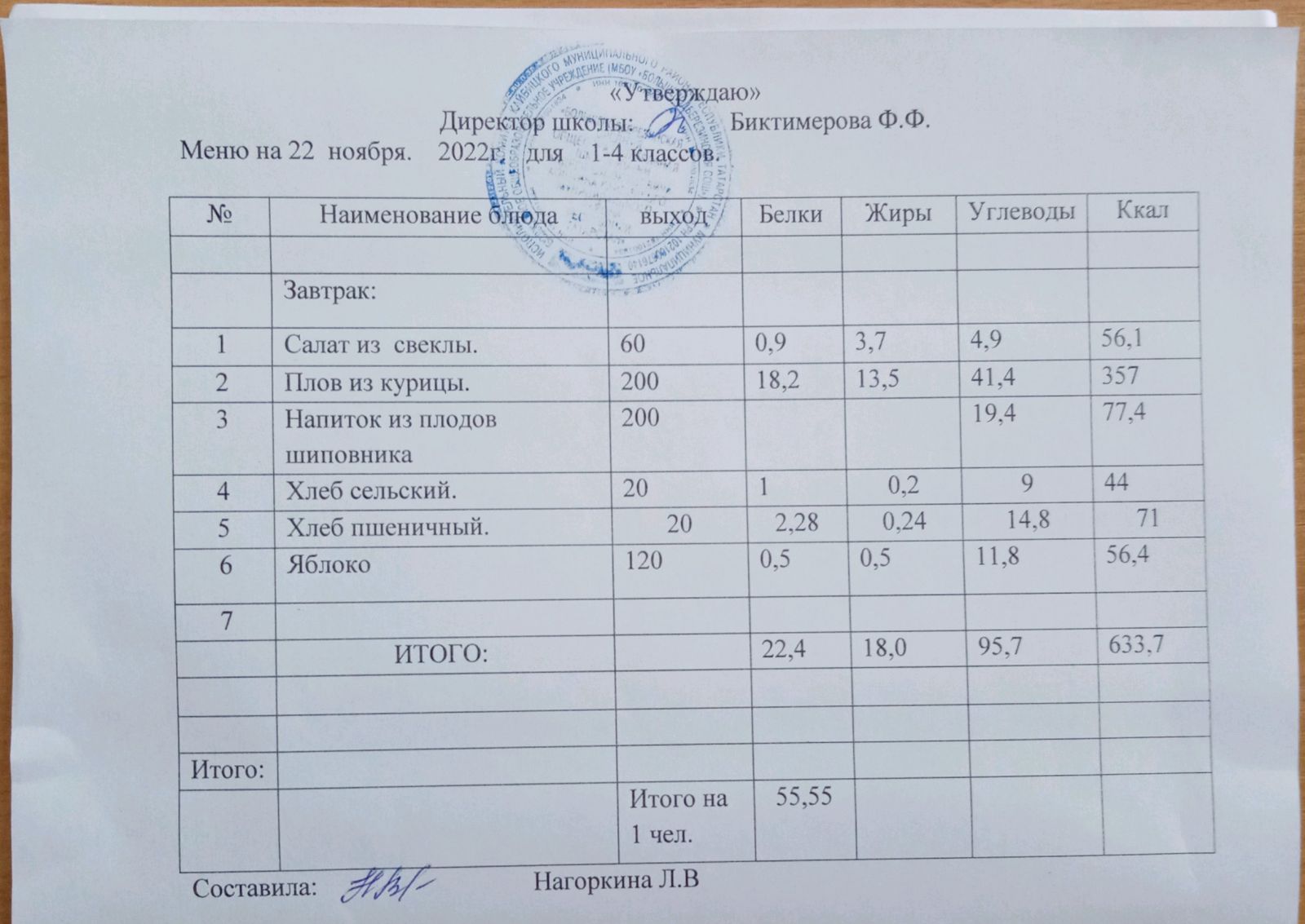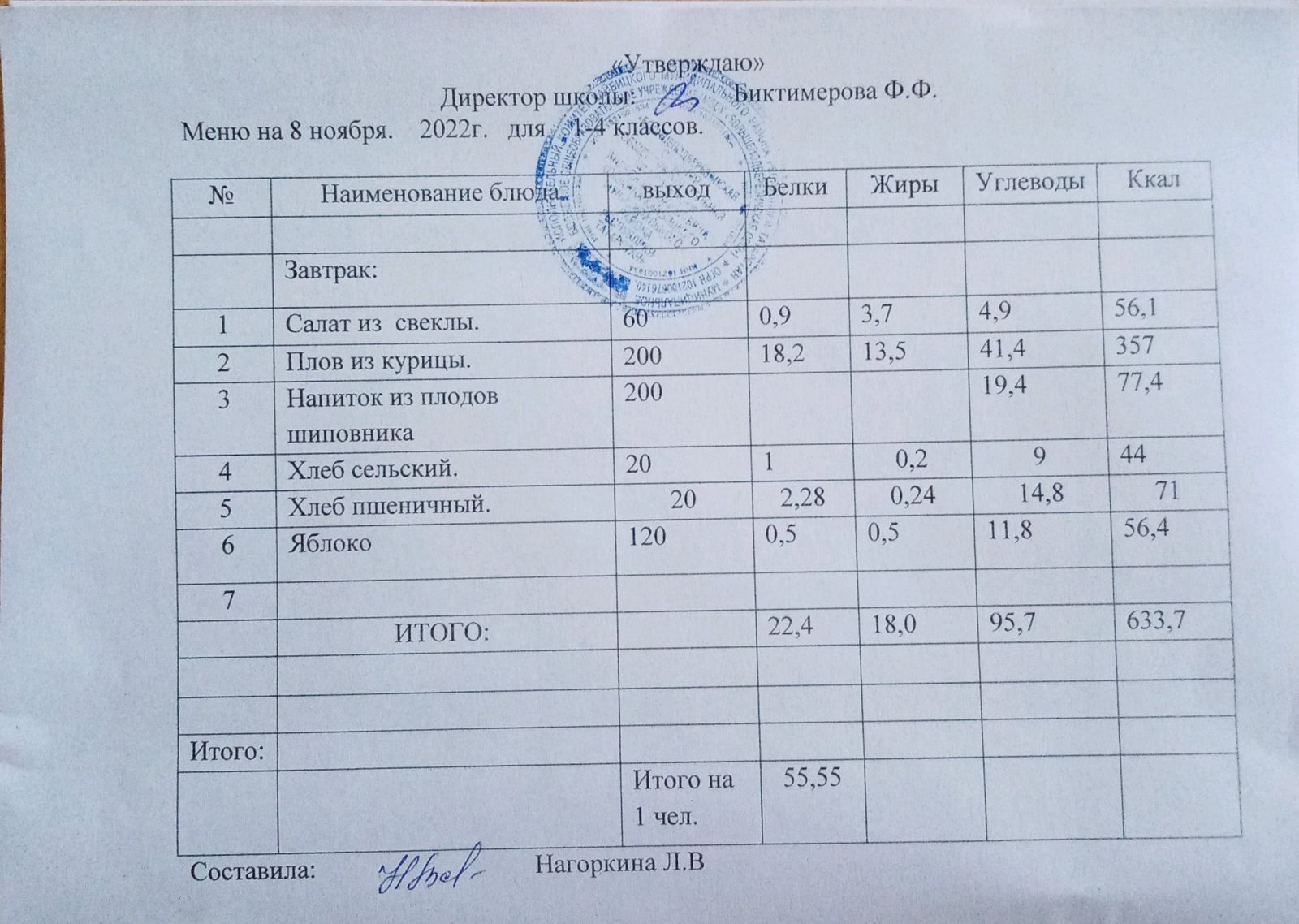 Ежедневное меню, 5-11 классы