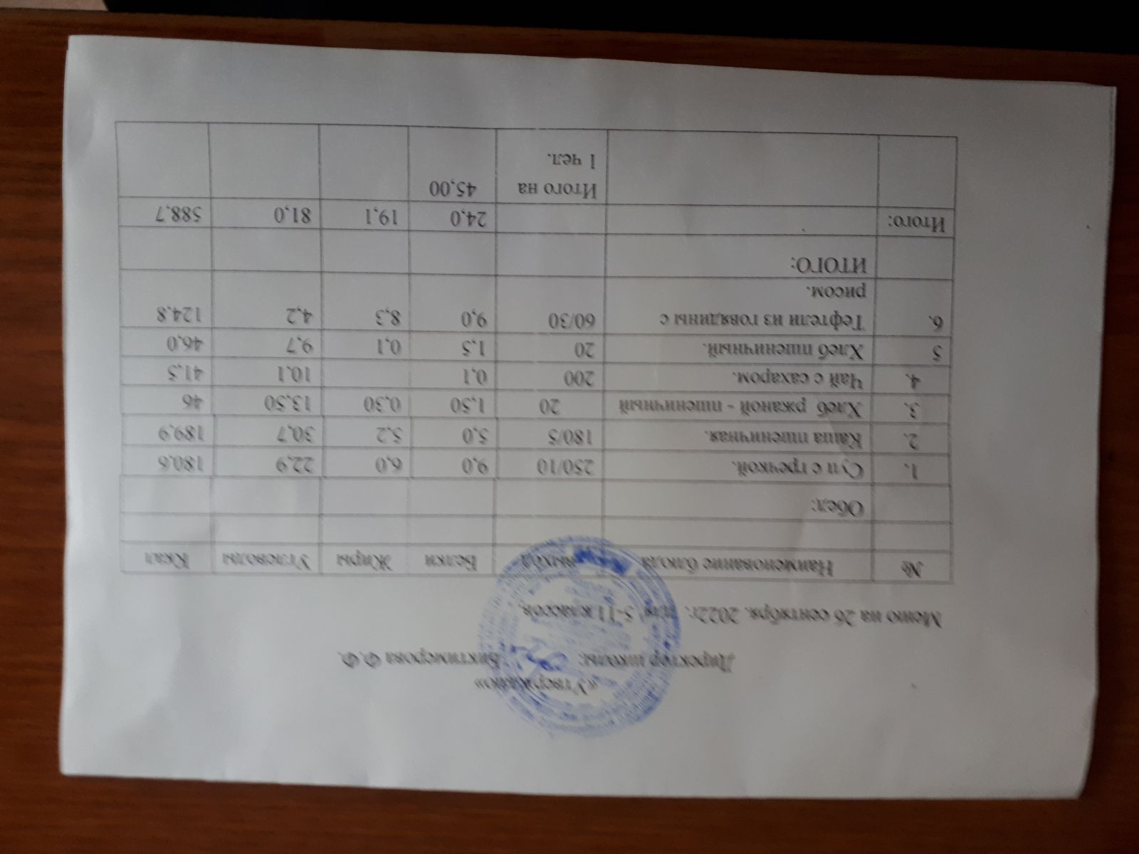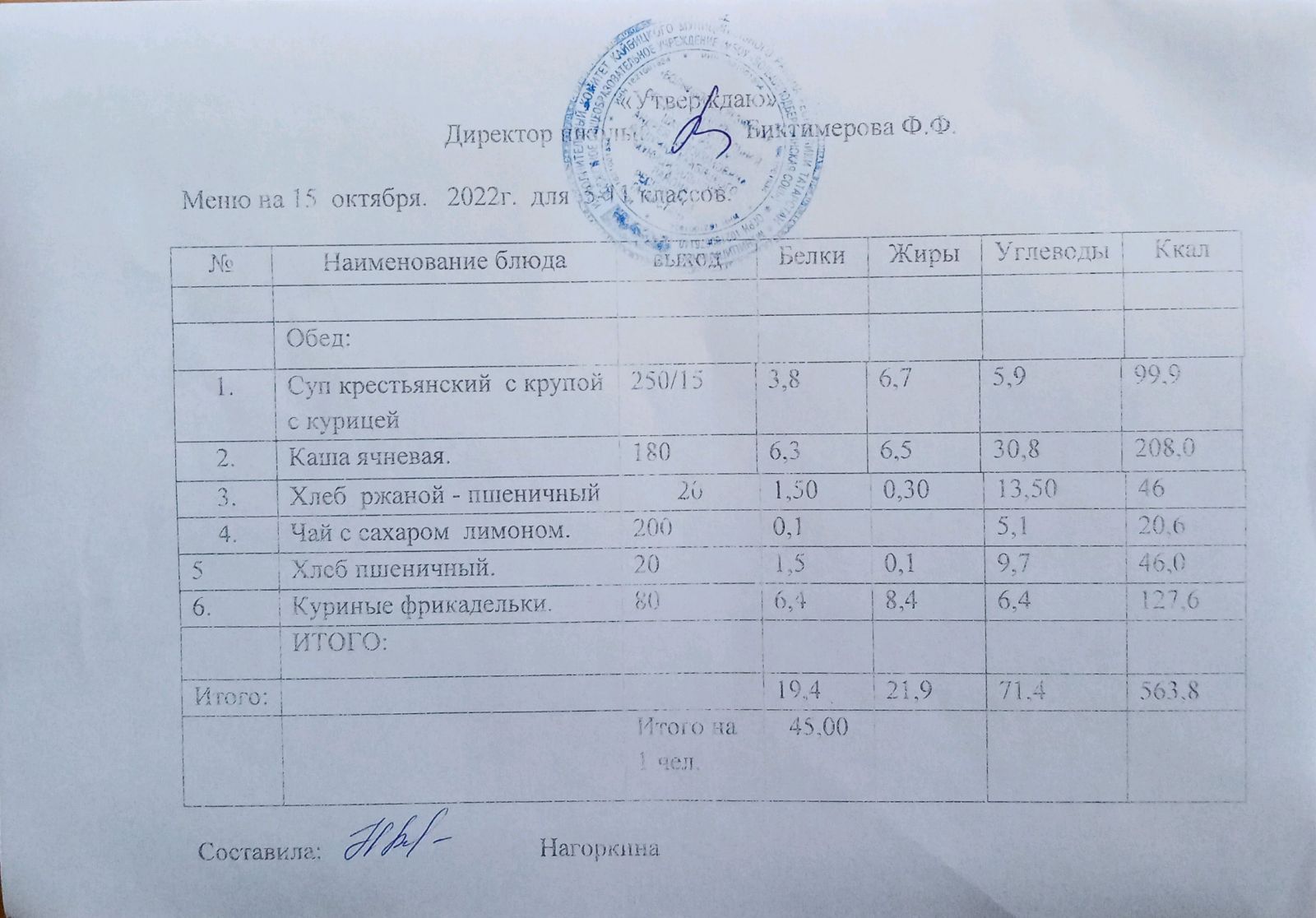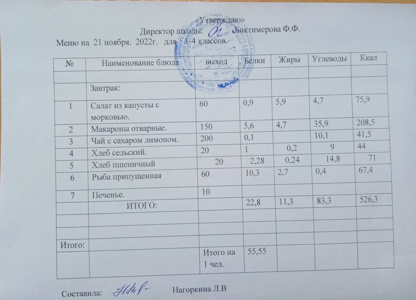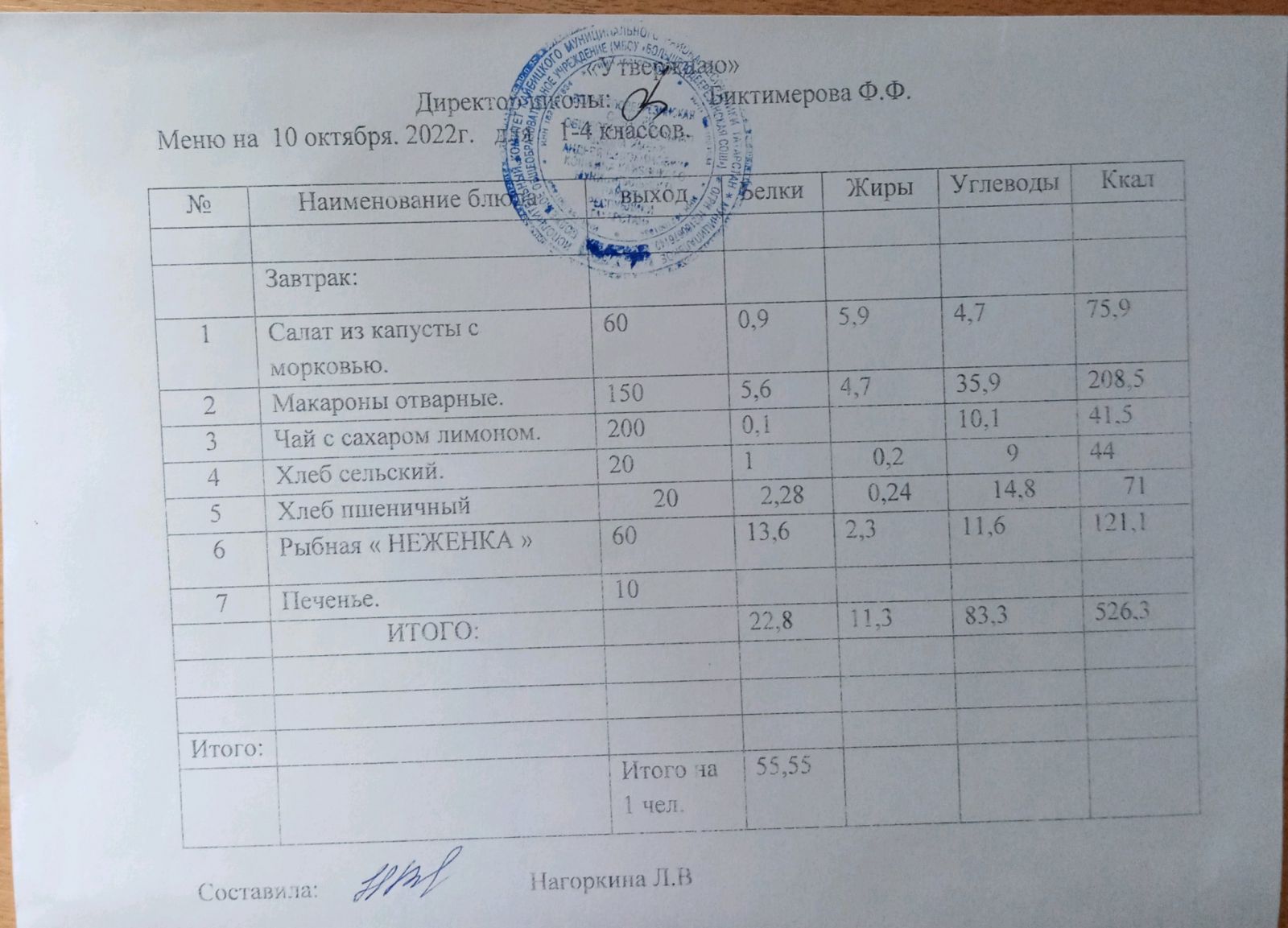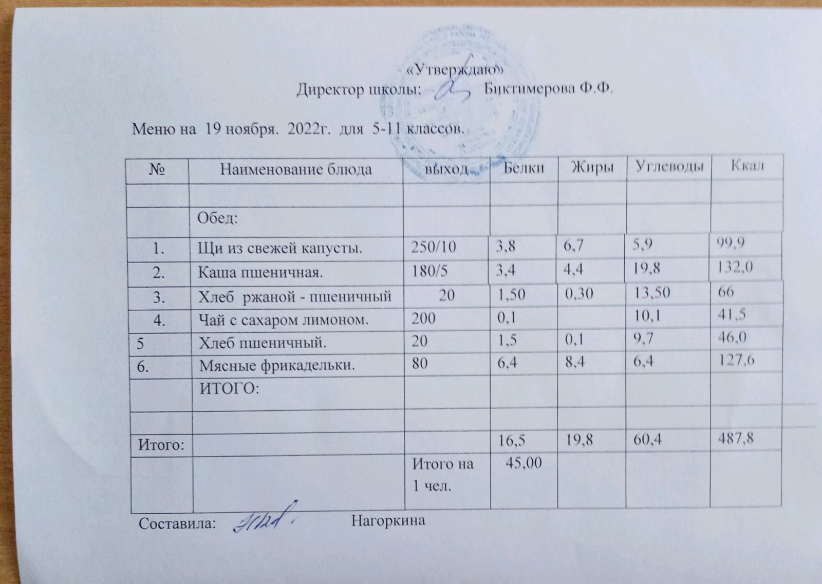 Ежедневное меню, 5-11 классы