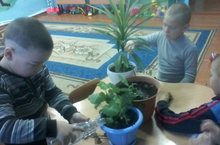 Наши мальчики с удовольствием ухаживают за комнатными растениями.