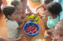 "Су-тереклек чыганагы"темасына әңгәмә үткәрдек.Кешеләр, үсемлекләр,хайваннар өчен дә су кирәк.Судан башка тереклек юк.Без кечкенә булсак та сулыкларыбызны саклау ,елга-күл буйларында сак булу кирәк икәнлеген аңлаттык.Бергәләп бакчабыз "күленнән" "балыклар" тоттык.