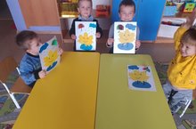 При создании аппликации мы учим детей работать с ножницами, а также правильно располагать подделку согласно образцу, умение работать с клеем и бумагой, а также развивать мелкую моторику рук и аккуратность к собственному творчеству.