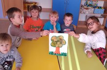Самая прекрасная пора года – осень. Она окутывает деревья яркими красками. Всю эту красоту осенних деревьев и листопада мы наблюдаем с детками во время прогулки. Ребятам очень захотелось сохранить красоту осенних, разноцветных листьев в своих работах. Во время занятия дети учились лепить листья, и знакомились с приемам лепки (из пластилина делали маленький шар (комок) прикладывали к листу бумаги , пальцем прижимали его). Дети лепили с удовольствием и интересом.
