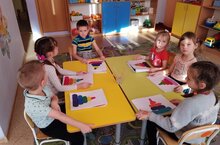Дети взяли салфетку, середину раскрасили. Накрутили салфетку на деревянную шпажку и сжали к середине. Вытащив карандаш, положили своих червячков в тарелку и стали капать водой при помощи трубочки.Червячки стали постепенно окрашиваться и вытягиваться.У детей восторг, ведь их червячки на глазах ожили.