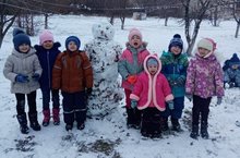 Природа иногда приносит нам свои сюрпризы. Хотя по календарю пока еще осень, но уже выпал снег. Каждый год дети его ждут с нетерпением. 15 ноября воспитанники вышли на прогулку в этот осенний день. Хотя снега практически нет, но всё же ребята смогли слепить снеговика. Дети получили огромное удовольствие и радость, играя с первым снегом.